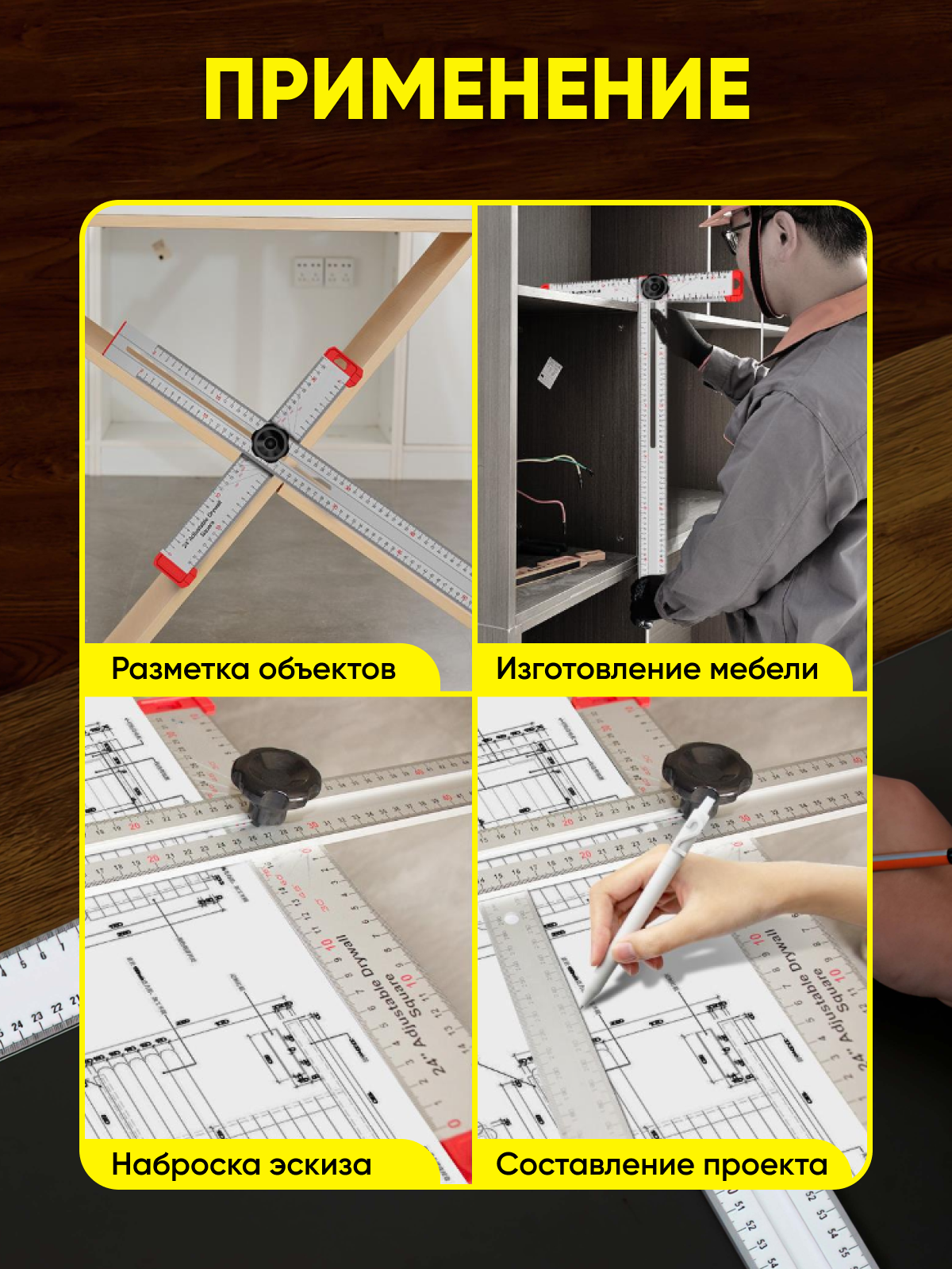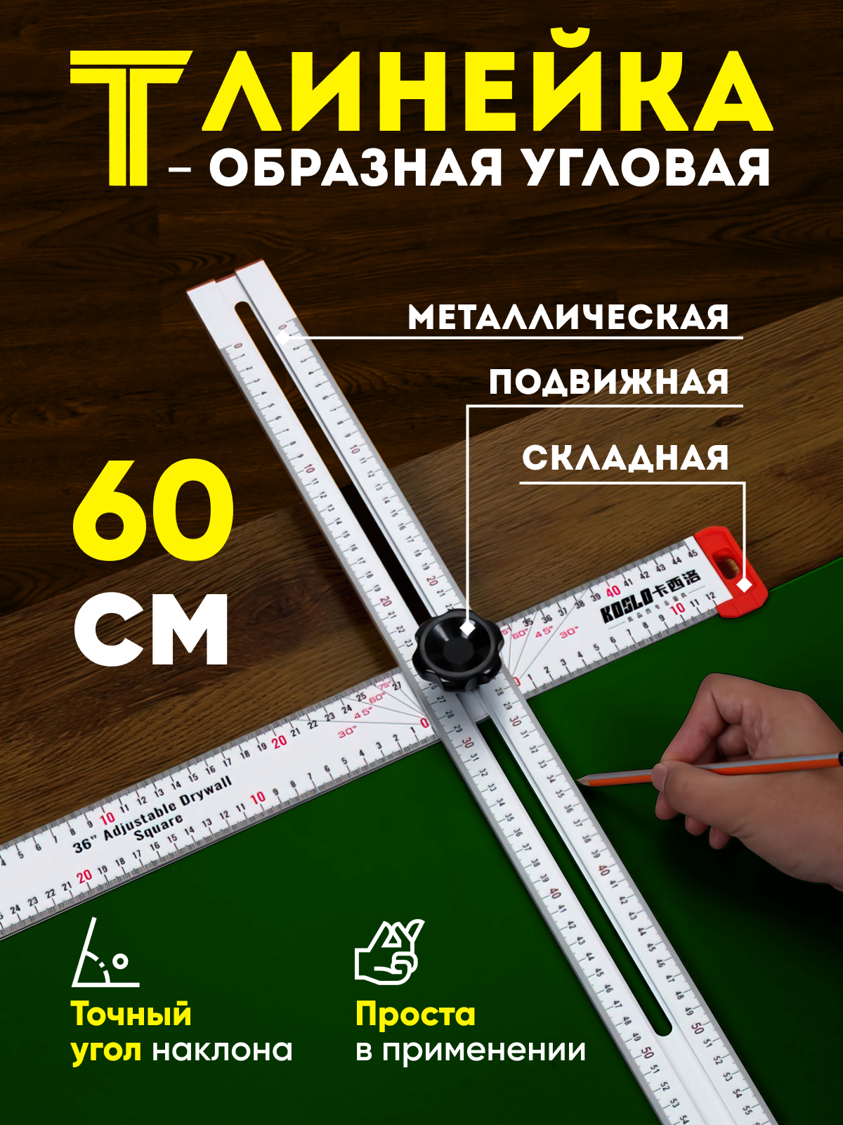 Т-образная линейка для углов, 60 см