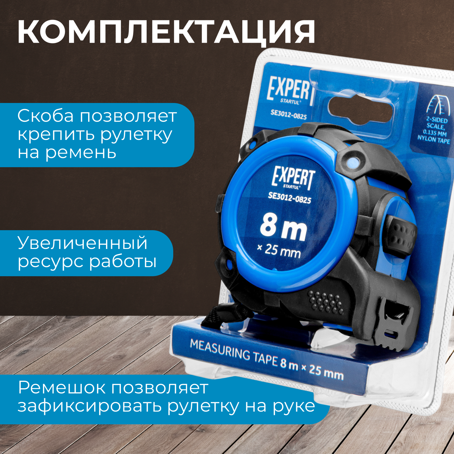 Рулетка 3м/16мм EXPERT STARTUL (SE3012-0316) (Двухсторонняя шкала нанесения, нейлоновое покрытие, двухсторонний зацеп)