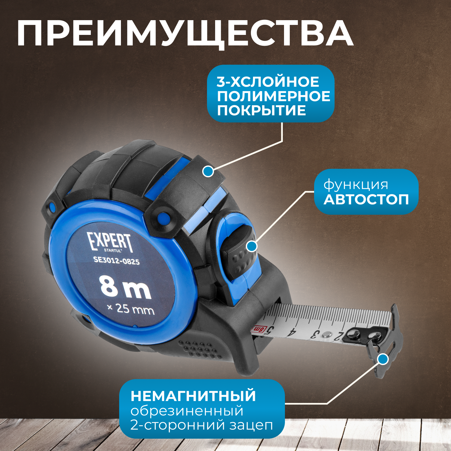 Купить Рулетка измерительная 8 м STARTUL Expert с функцией автостоп (SE3012-0825)