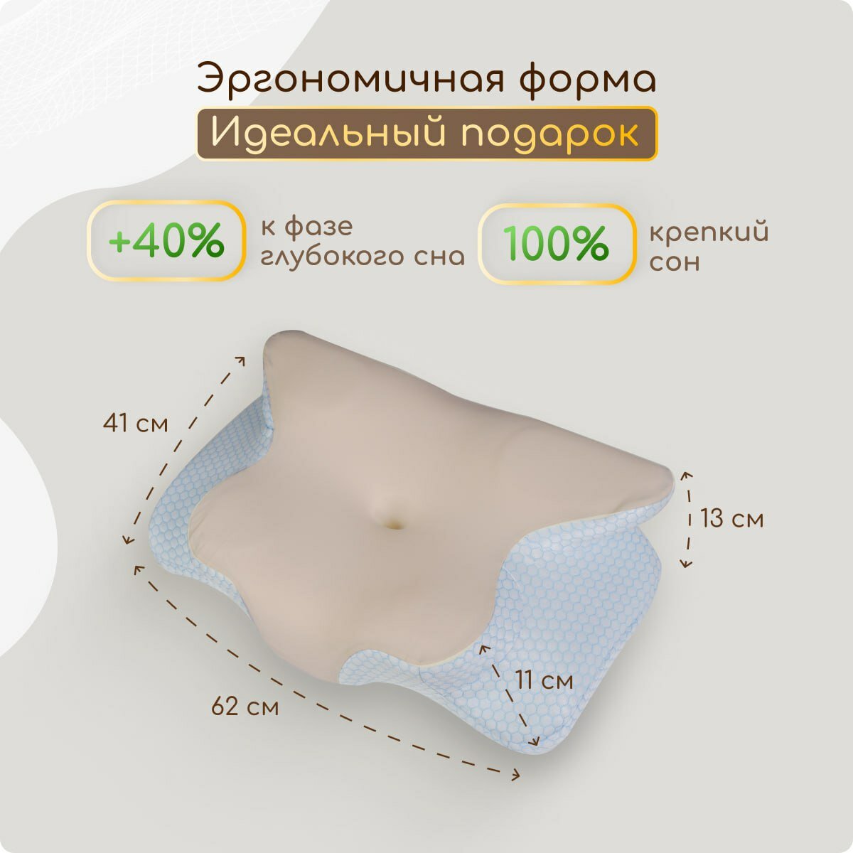Купить Ортопедическая подушка в форме бабочки ORTONEXUS, с эффектом памяти, средней жесткости, 62x41, валики 11 и 13 см