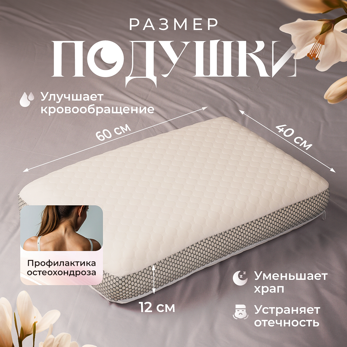 Ортопедическая подушка для сна Memory Foam с эффектом памяти, средней жесткости, 60х40х12 см интересное: