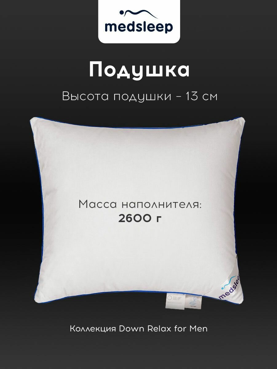 Medsleep Подушка "Down Relax for Men" хлопок, пух-перо, 70x70 1-пр. интересное: