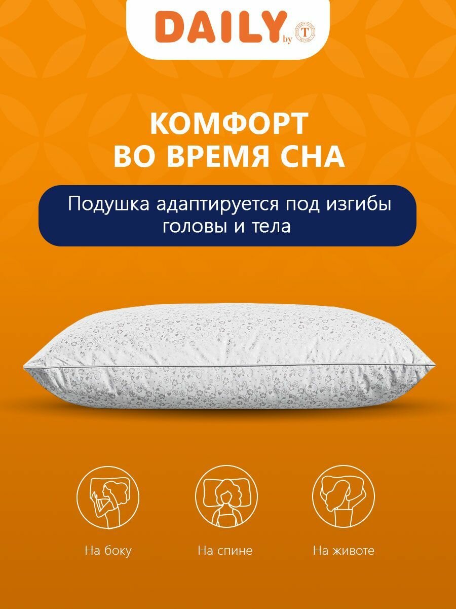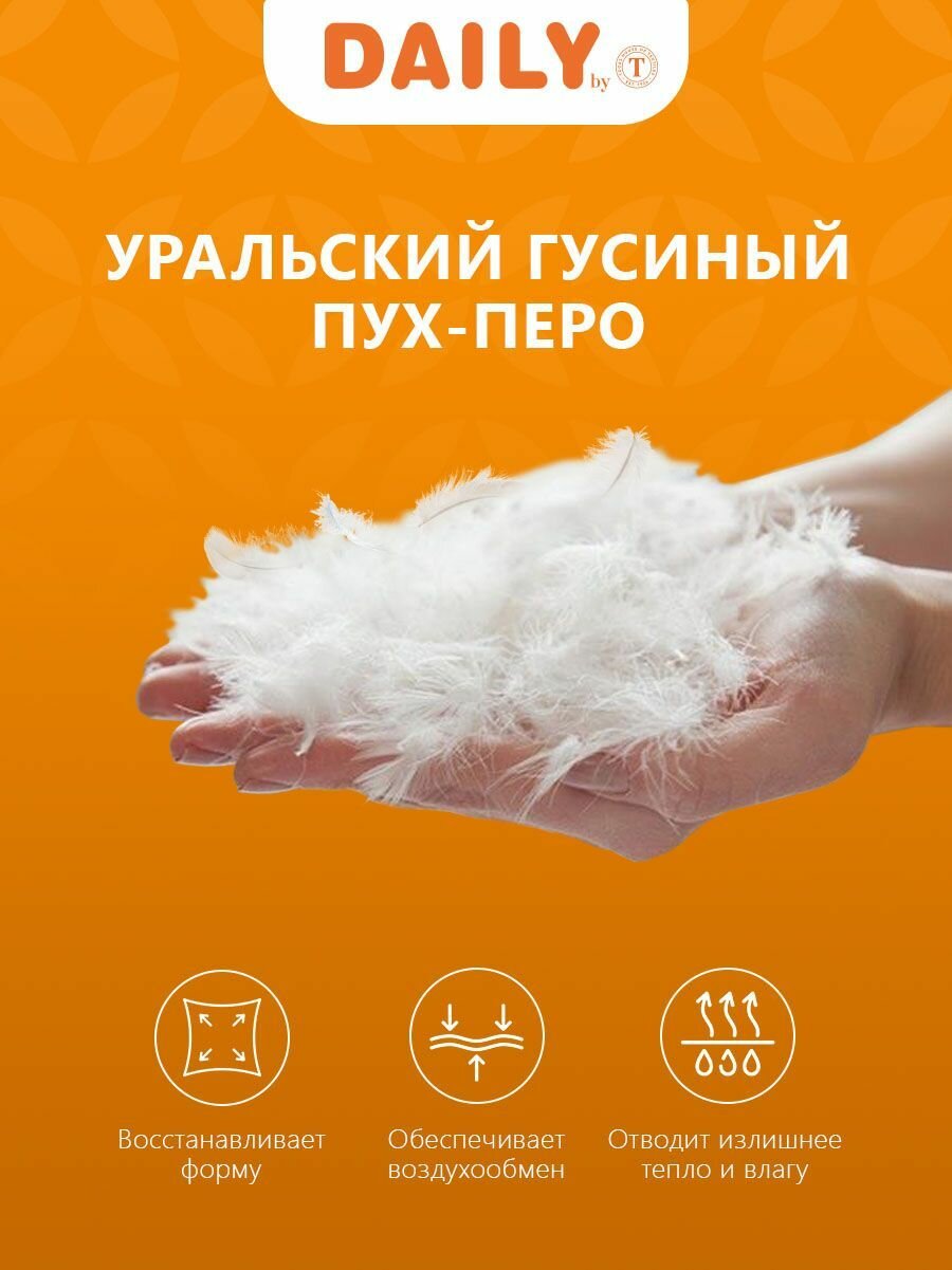 Daily by T Подушка "Пух-перо в тике" хлопок, пух Уральского гуся, Средняя жесткость, 70x70 1-пр. интересное: