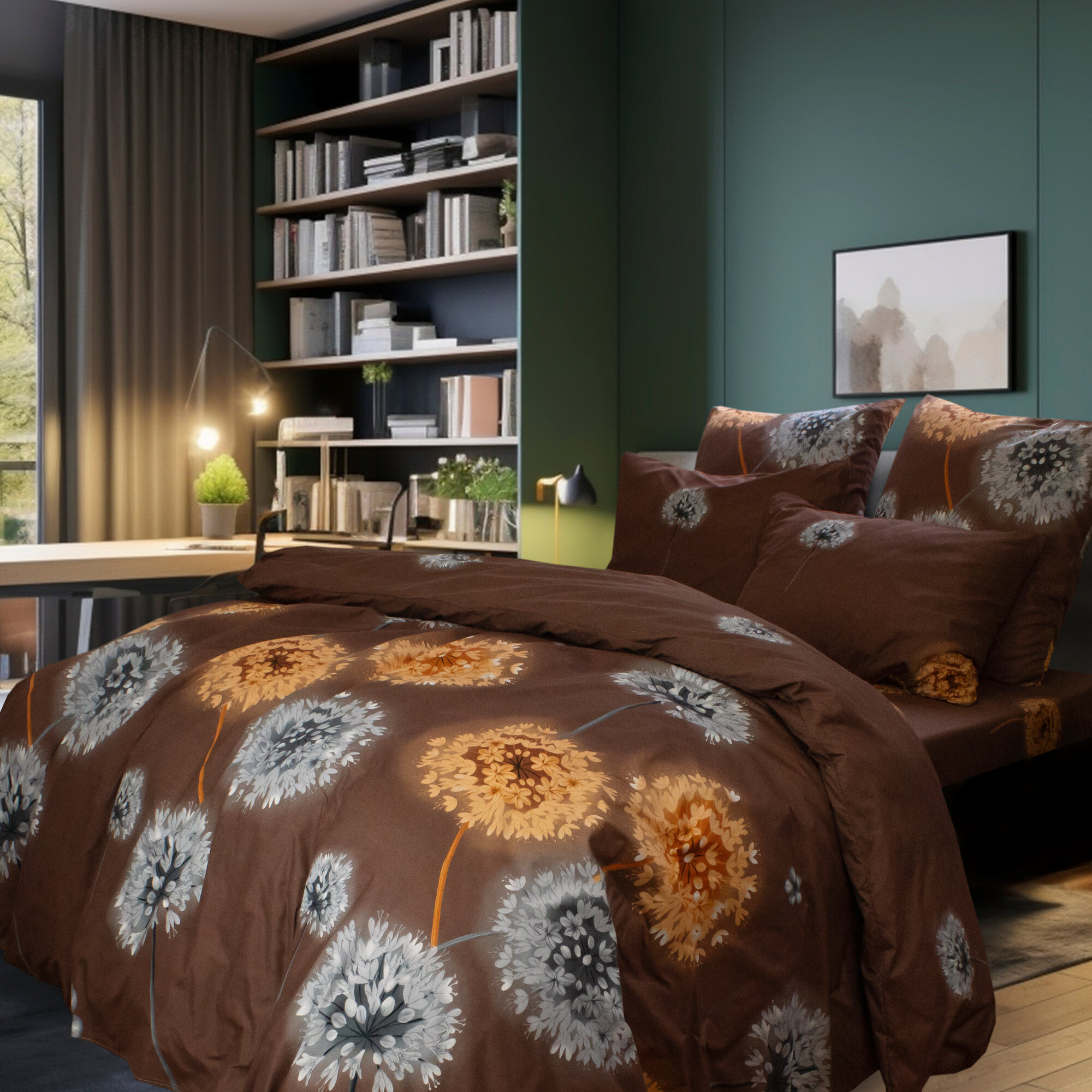 Купить Постельное белье евро с одуванчиками Cleo Art Color комплект полисатин
