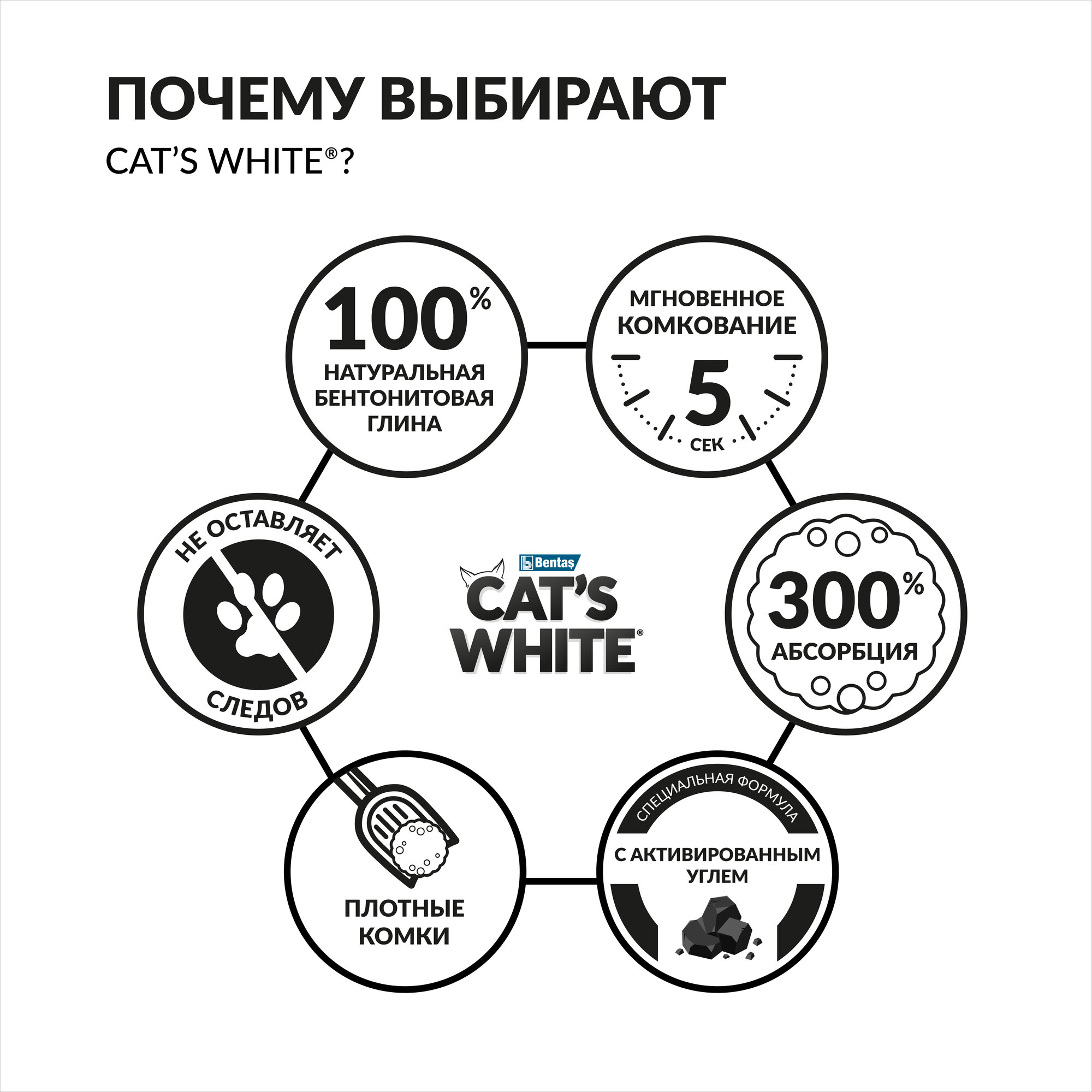Наполнитель для кошачьих туалетов Cat's White Activated Carbon комкующийся, бентонитовый с активированным углем (10л)