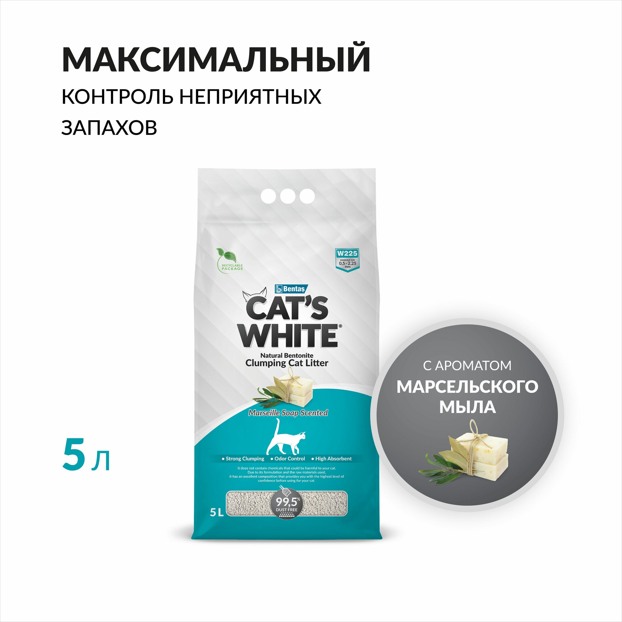 Купить Наполнитель комкующийся Cat's White Marseille soap с ароматом марсельского мыла для кошачьего туалета (5л)