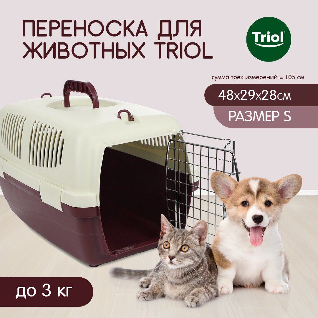 Переноска Triol для животных S, бургунди, 480*290*280мм интересное: