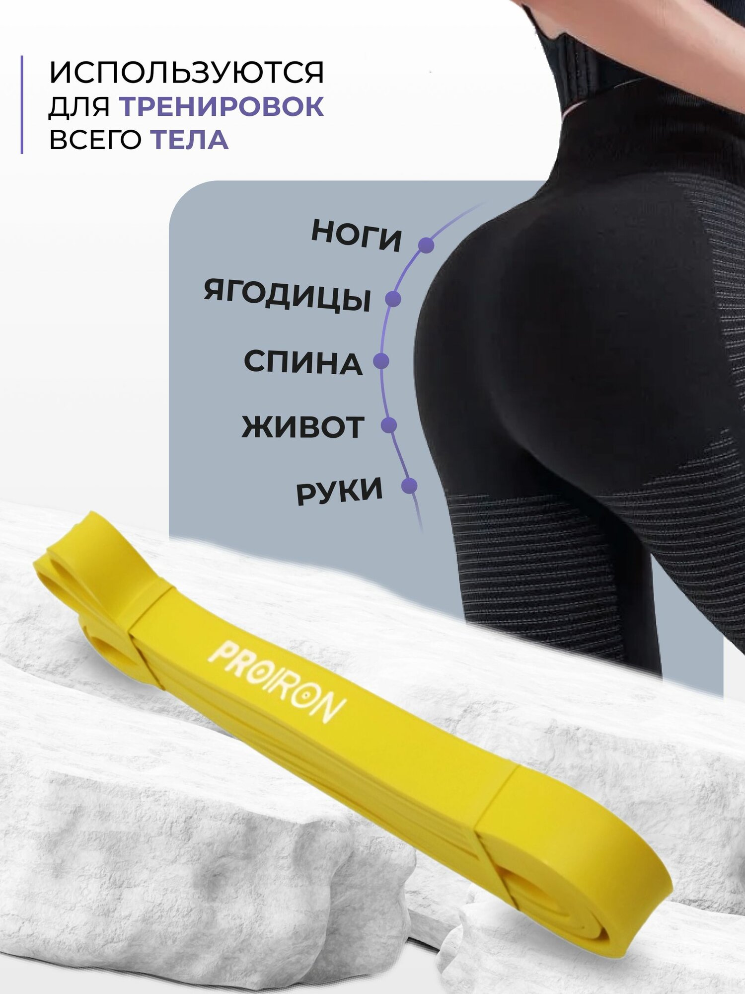 Резинка для фитнеса, PROIRON, нагрузка 18-31 кг, 2080х22х4,5 мм, желтый