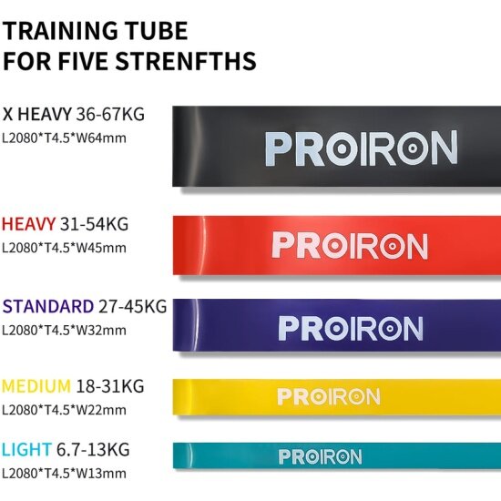 Резинка для фитнеса, PROIRON, нагрузка 36-67 кг, 2080х64х4,5 мм, черный