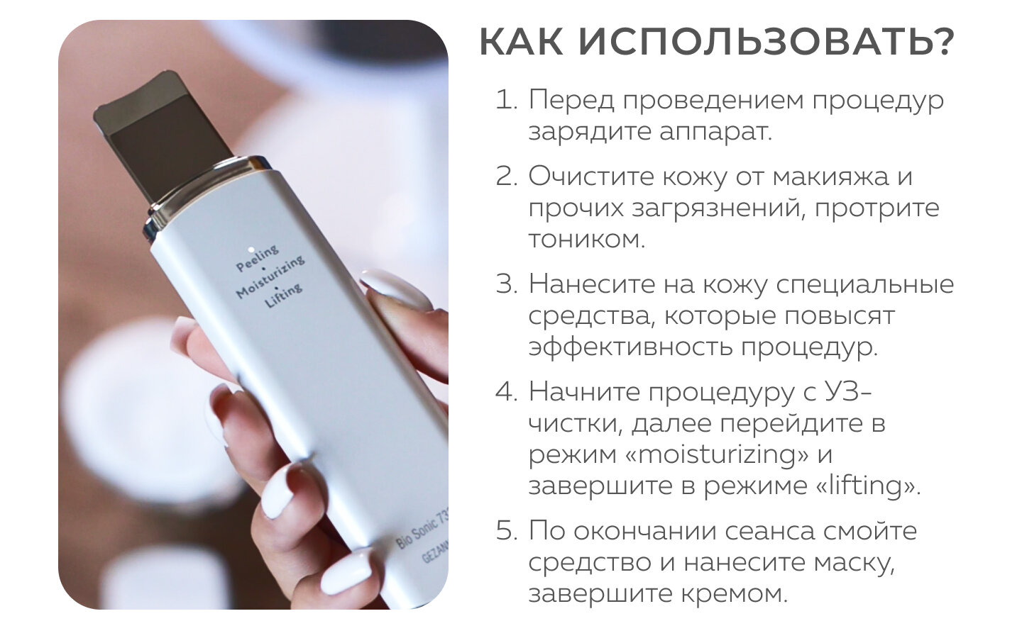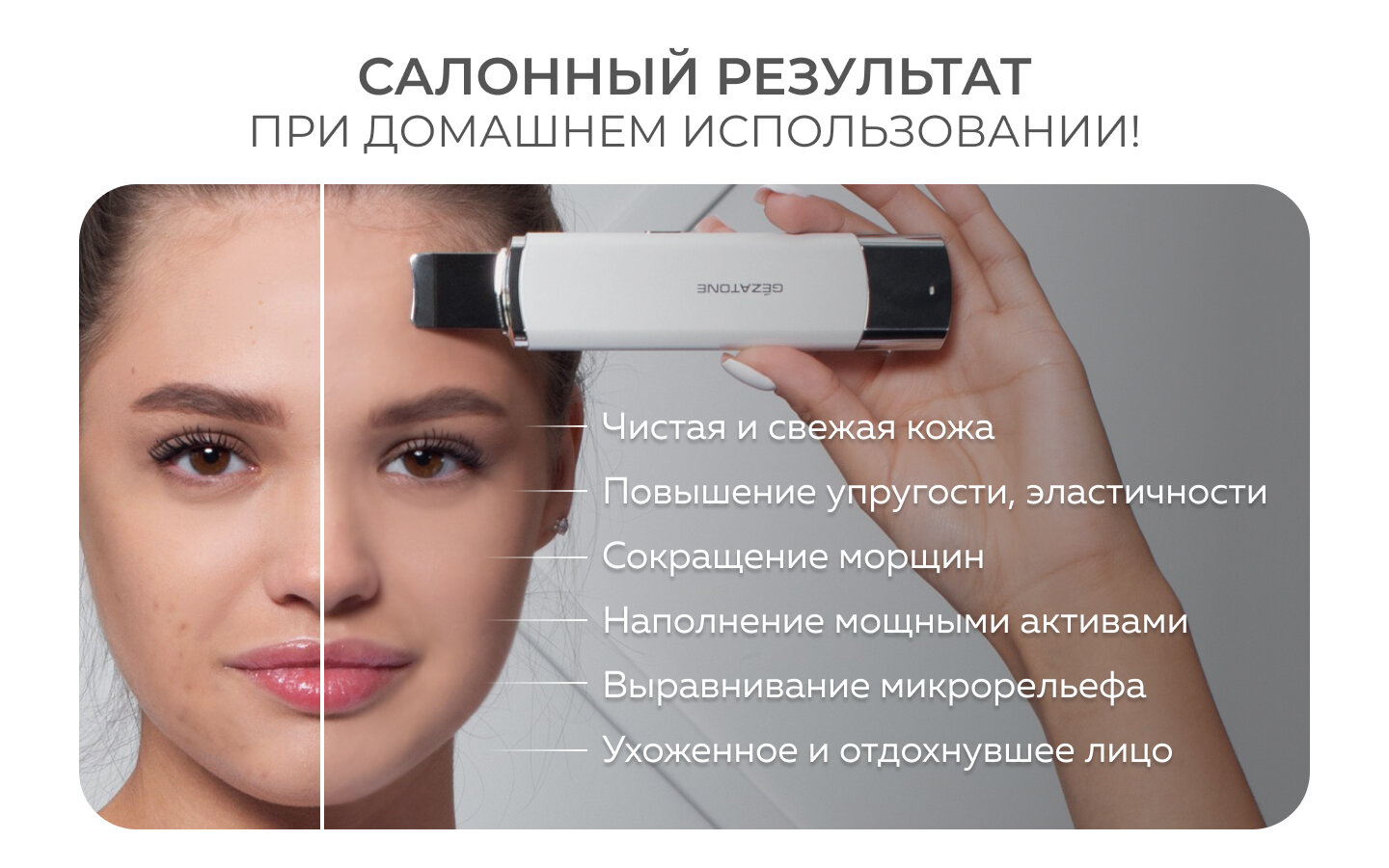 Gezatone, Ультразвуковая чистка лица, УЗ-скрабер, аппарат с фонофорезом Bio Sonic 733 интересное:
