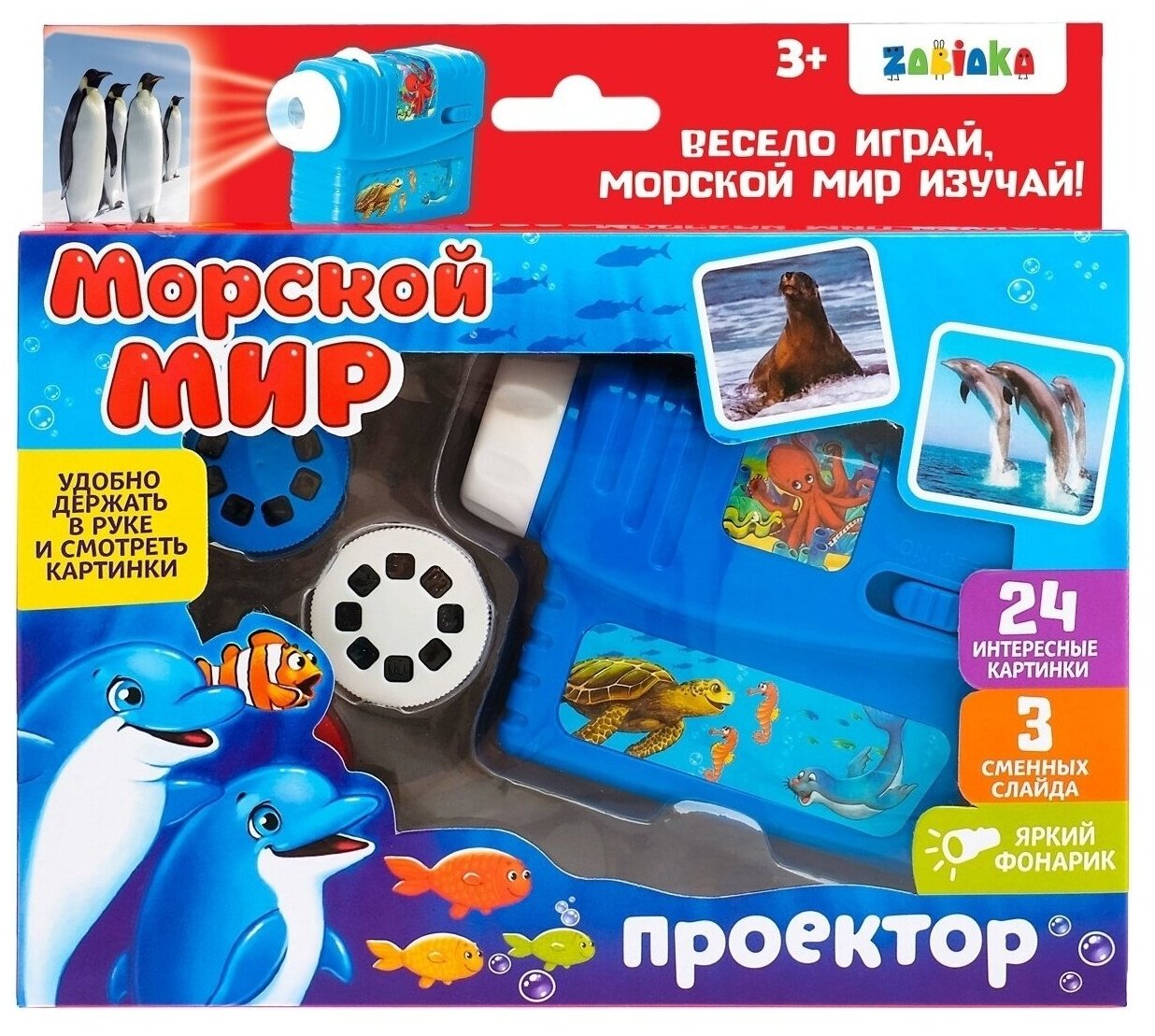 Купить Детский проектор-фонарик "Морской мир" для показа слайдов, диапроектор с 3 сменными слайдами по 8 картинок