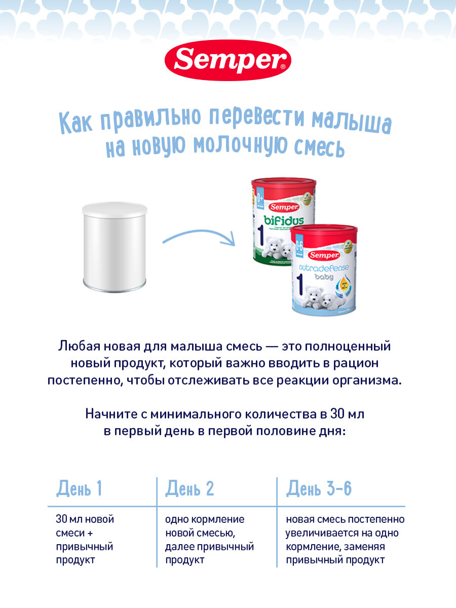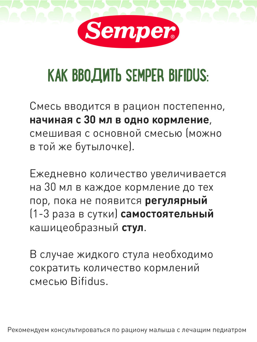 Молочная смесь Semper Bifidus 1 от запоров, лечебная, с рождения 400г интересное: