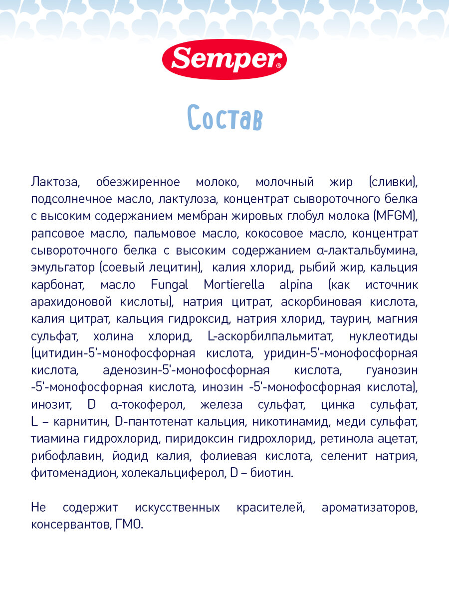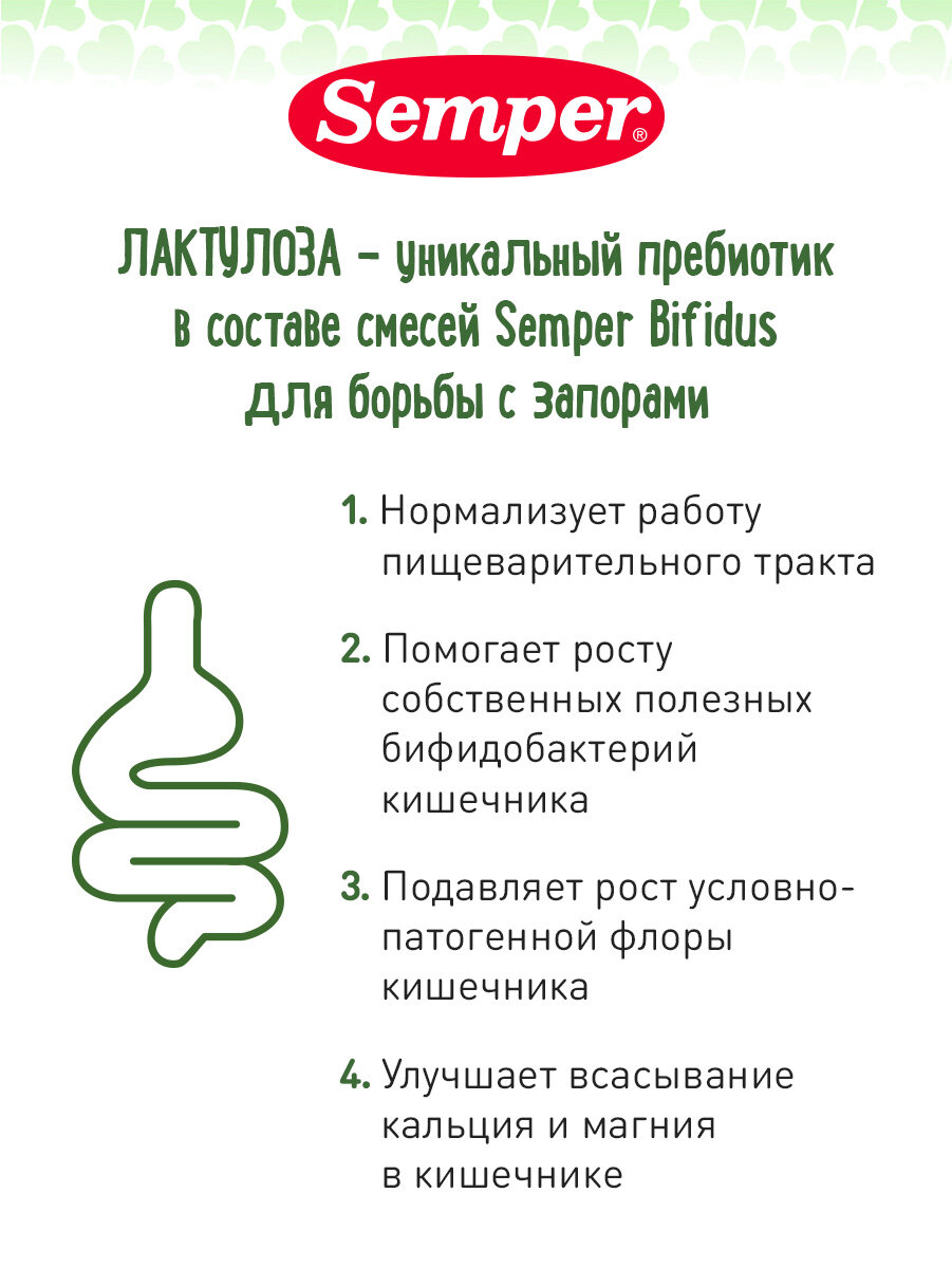 Semper Bifidus 1 при запорах – лечебная молочная смесь с пребиотиком лактулозой, 0-6 мес, 400гр (Бифидус)