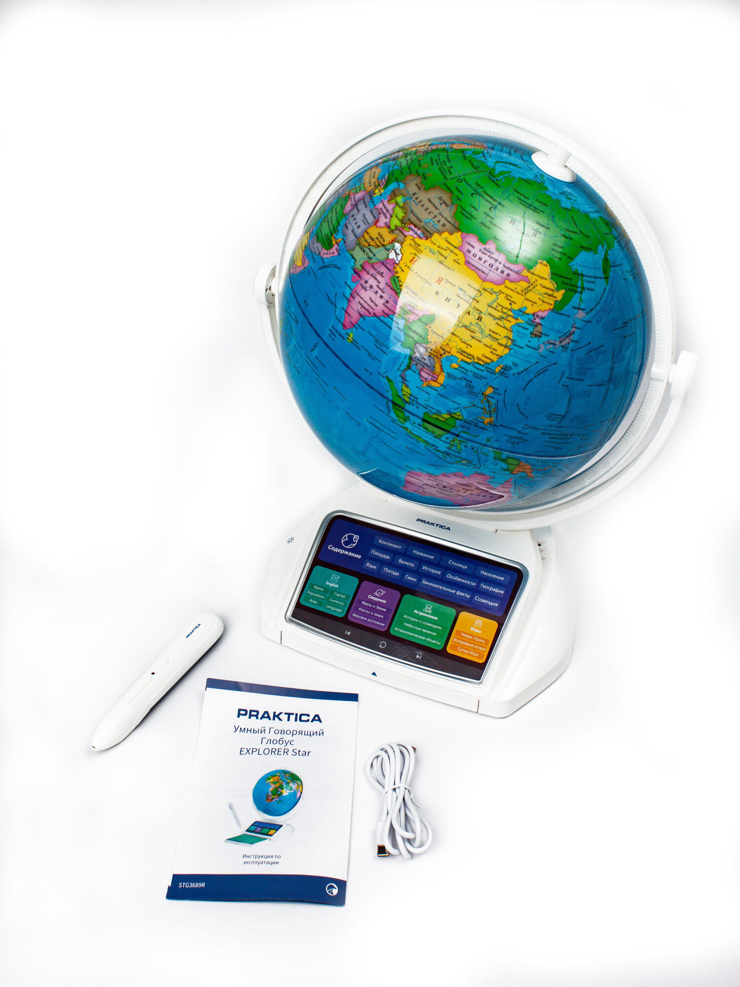 | Подробная комплектация | Глобус, интерактивная ручка, кабель USB, инструкция |