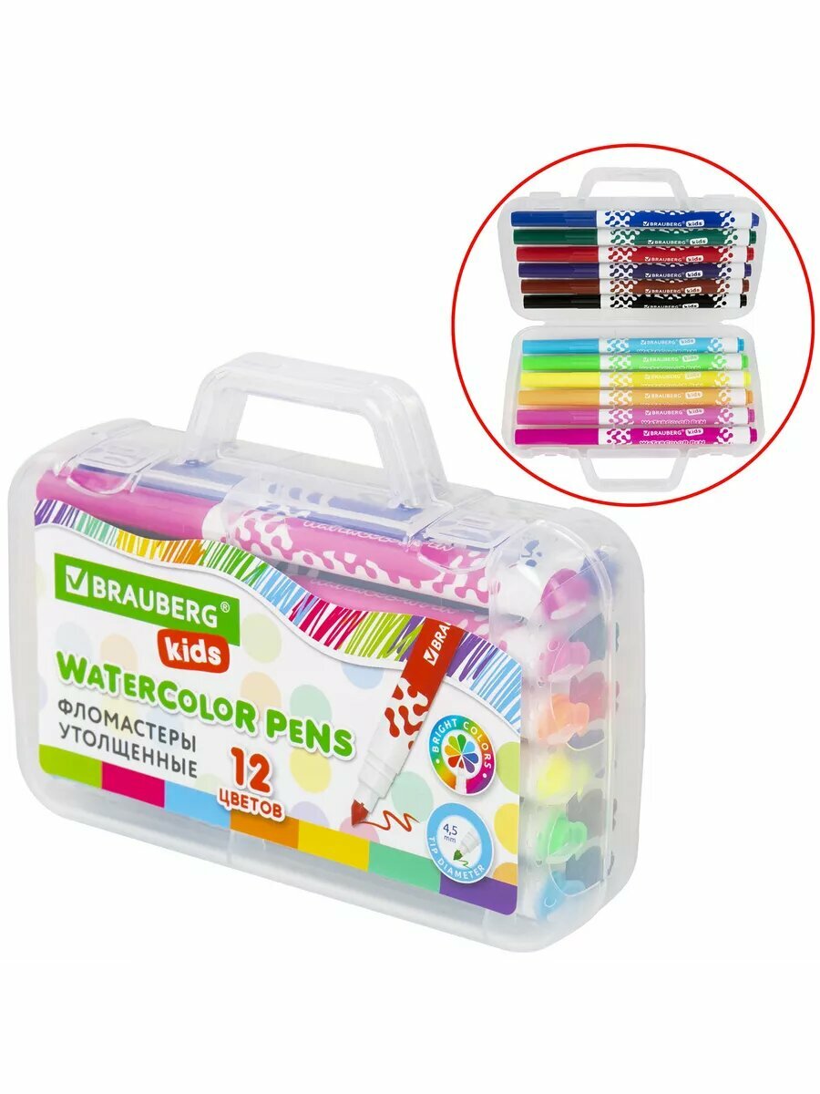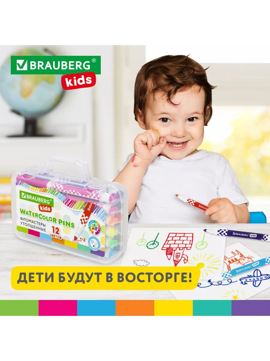 Купить Фломастеры в портфельчике утолщенные на водной основе 12 цветов