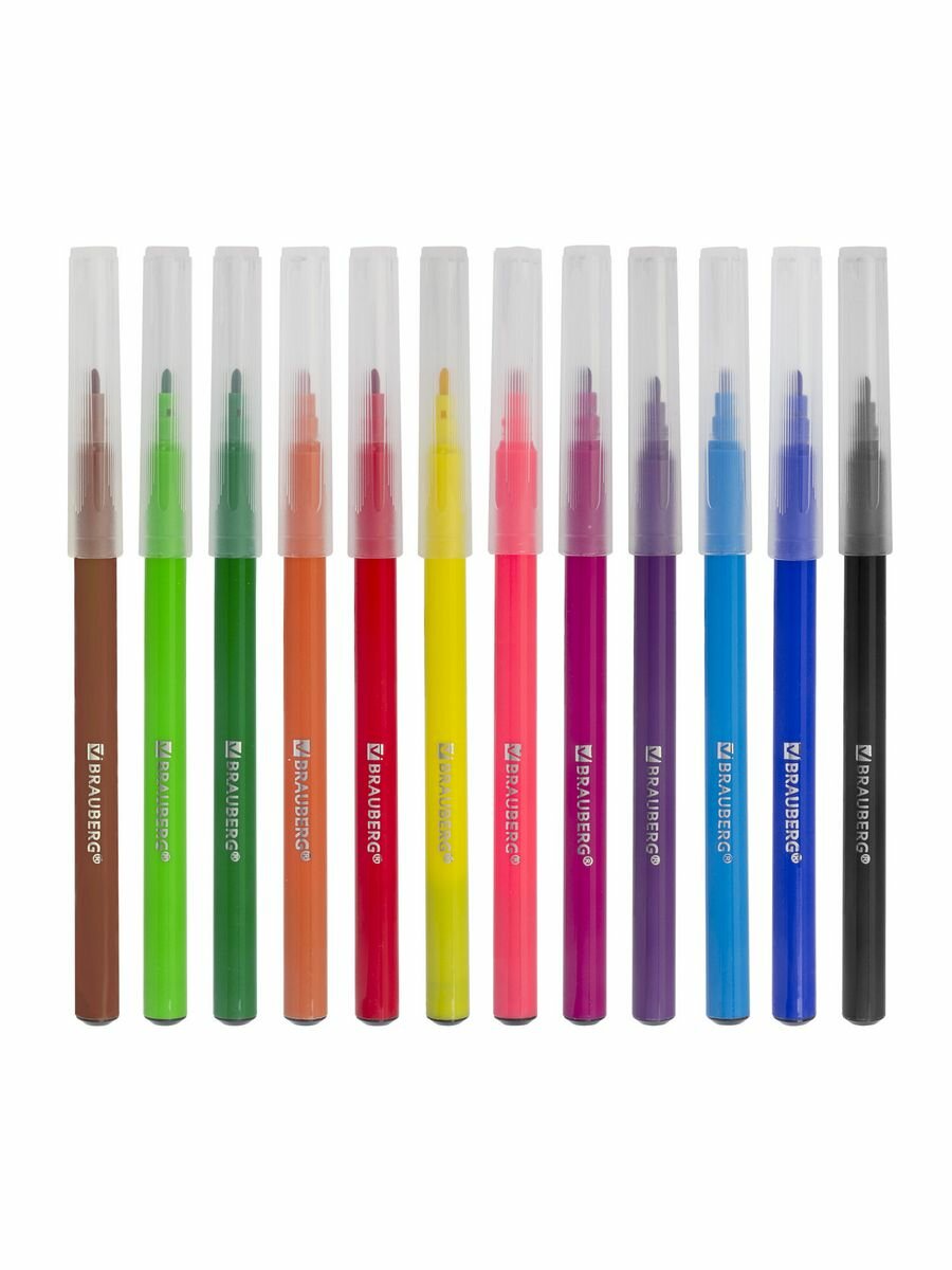Фломастеры Brauberg "академия", 12 цветов, вентилируемый колпачок, ПВХ упаковка, 151411