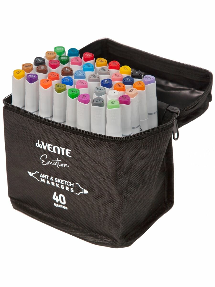 Набор маркеров для скетчинга и рисования 40 цветов, двусторонние (пулевидный 1 мм/скошенный до 6 мм) эргономичный трёхгранный корпус, чернила на спиртовой основе интересное: