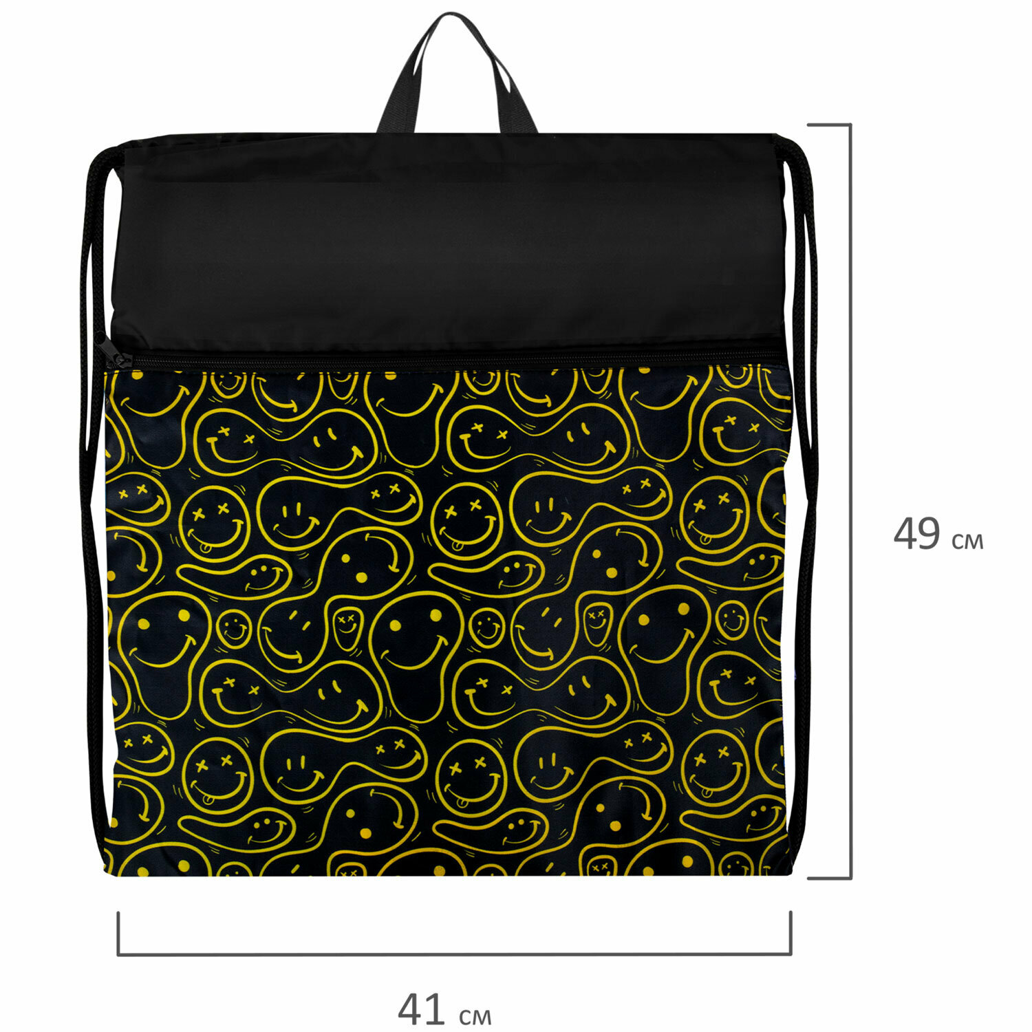 Мешок для обуви для мальчиков и девочек большой, сумка для сменки в школу, чехол детский плотный с ручкой, карманом, 49х41 см, Brauberg Smiles, 272403