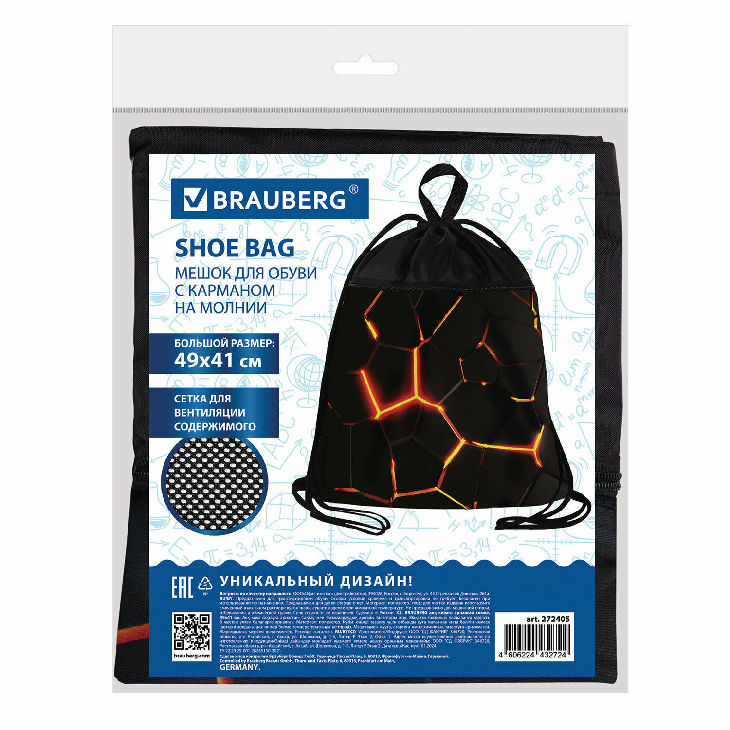 Мешок для обуви Brauberg большой, с ручкой, карман на молнии, сетка, 49х41 см, Drive, 271060