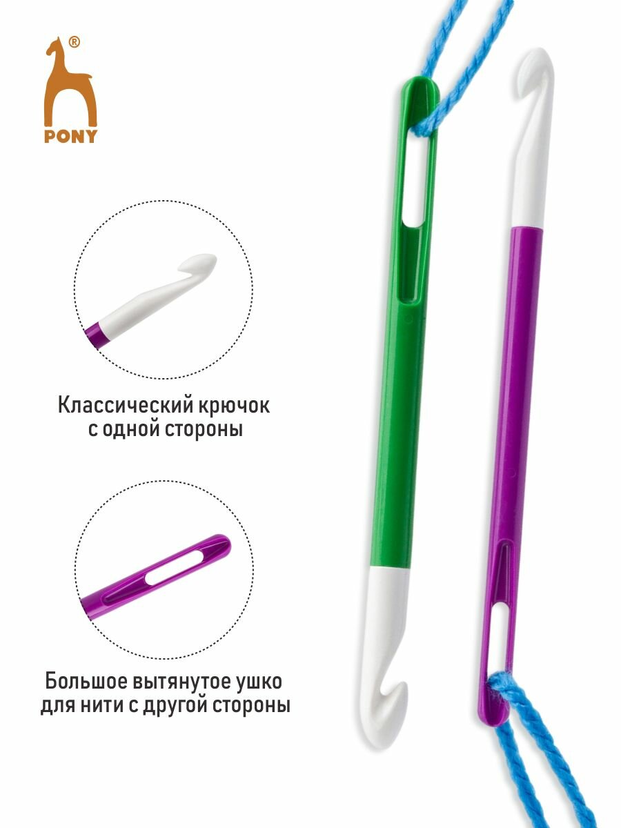 Купить Крючки вязальные для нукинга 8мм/10мм*16,5см, пластик, 2 шт, PONY, 60695