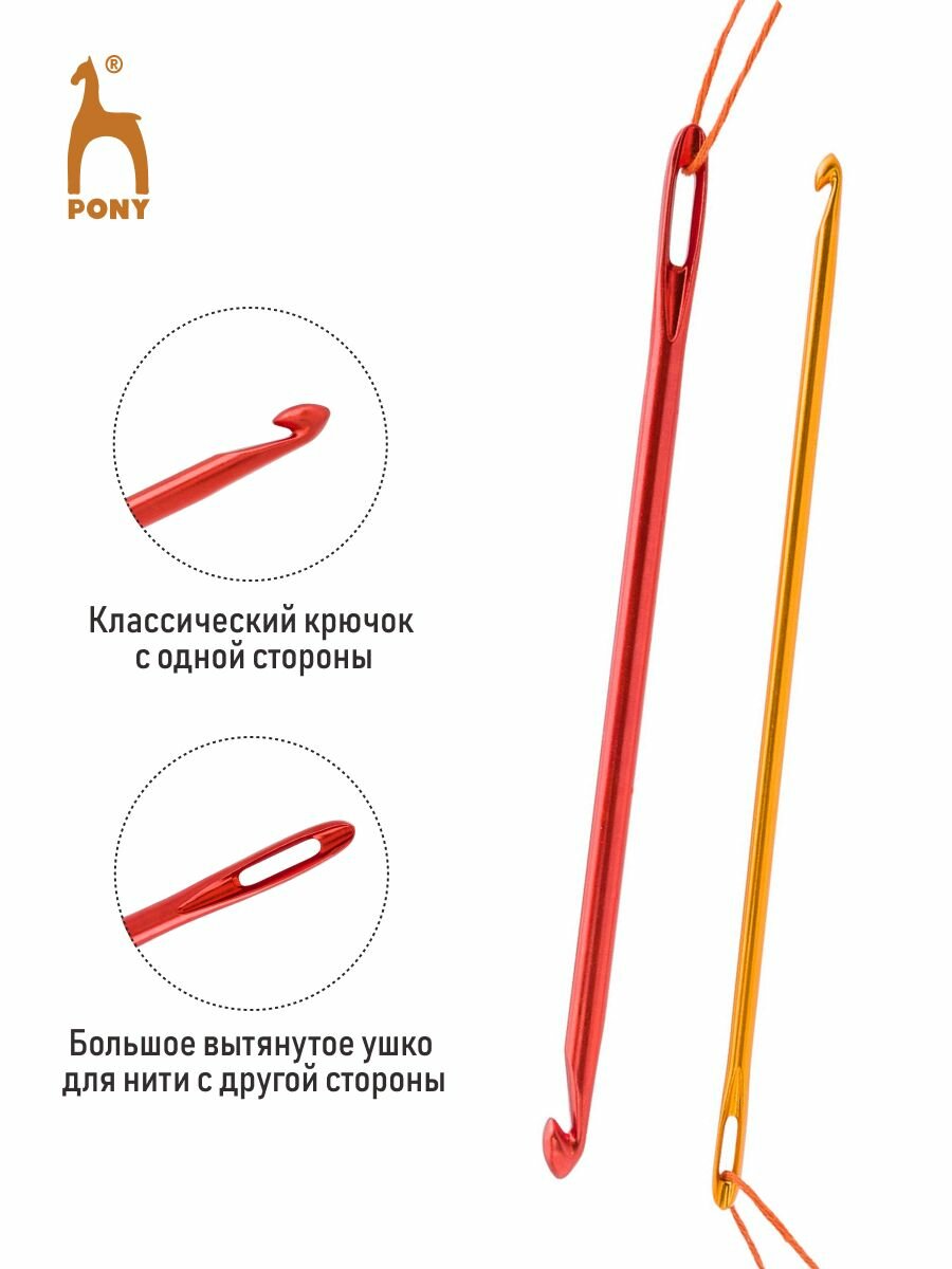 Крючок для вязания PONY COLOUR, длина 15 см, диаметр 2 мм, алюминиевый