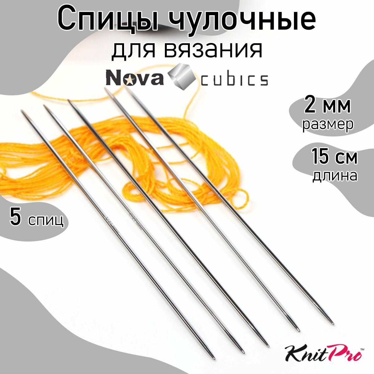 Спицы чулочные Nova cubics 2мм/15см, никелированная латунь, серебристый, 5шт в упаковке, KnitPro, 12101