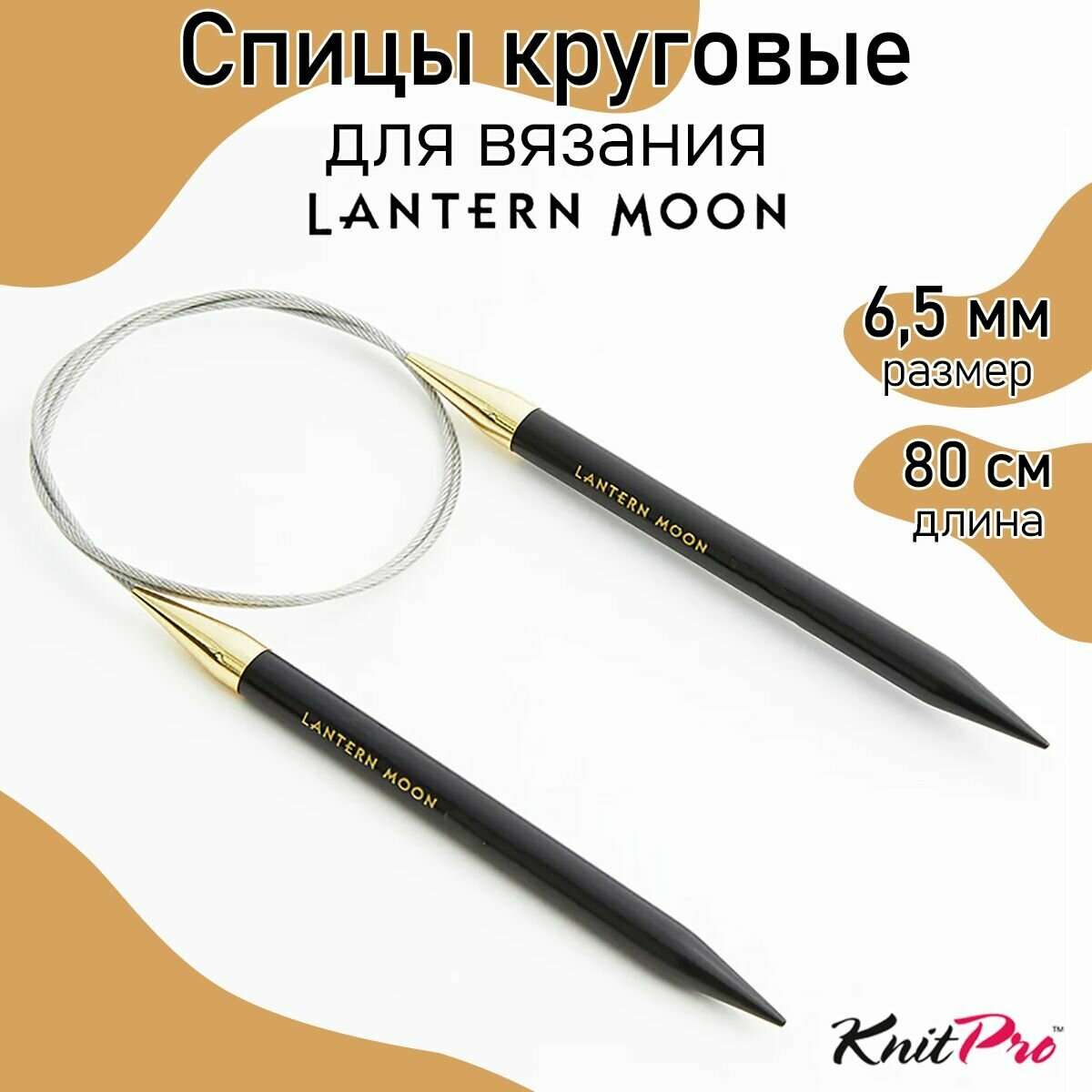 Спицы круговые Knit Pro для вязания, Lantern Moon, D 6,5 мм, L 80 см, эбеновое дерево, черный (KNPR.350090)