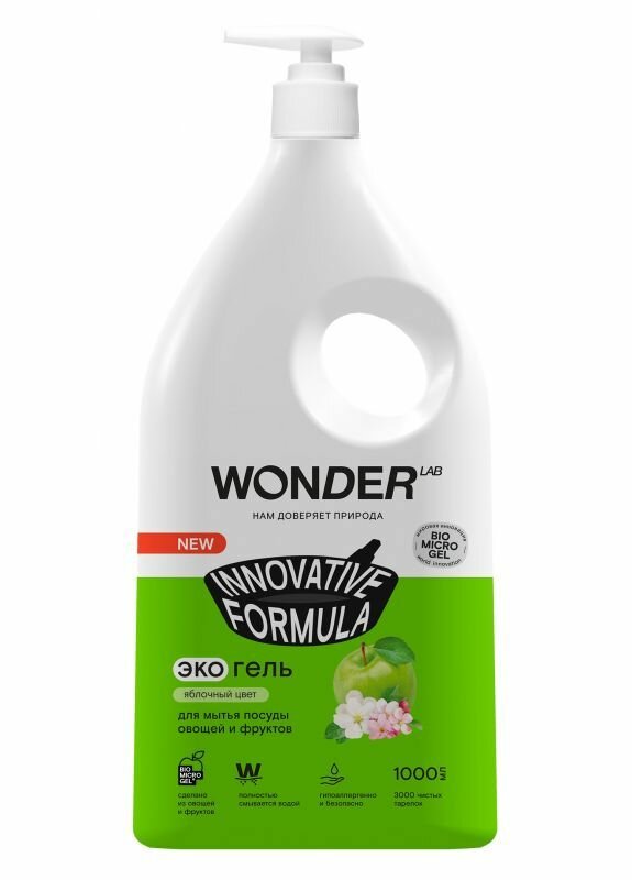 WONDER LAB Экогель для мытья посуды, овощей и фруктов Яблочный цвет, 1 л