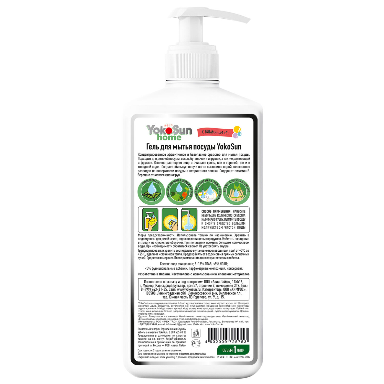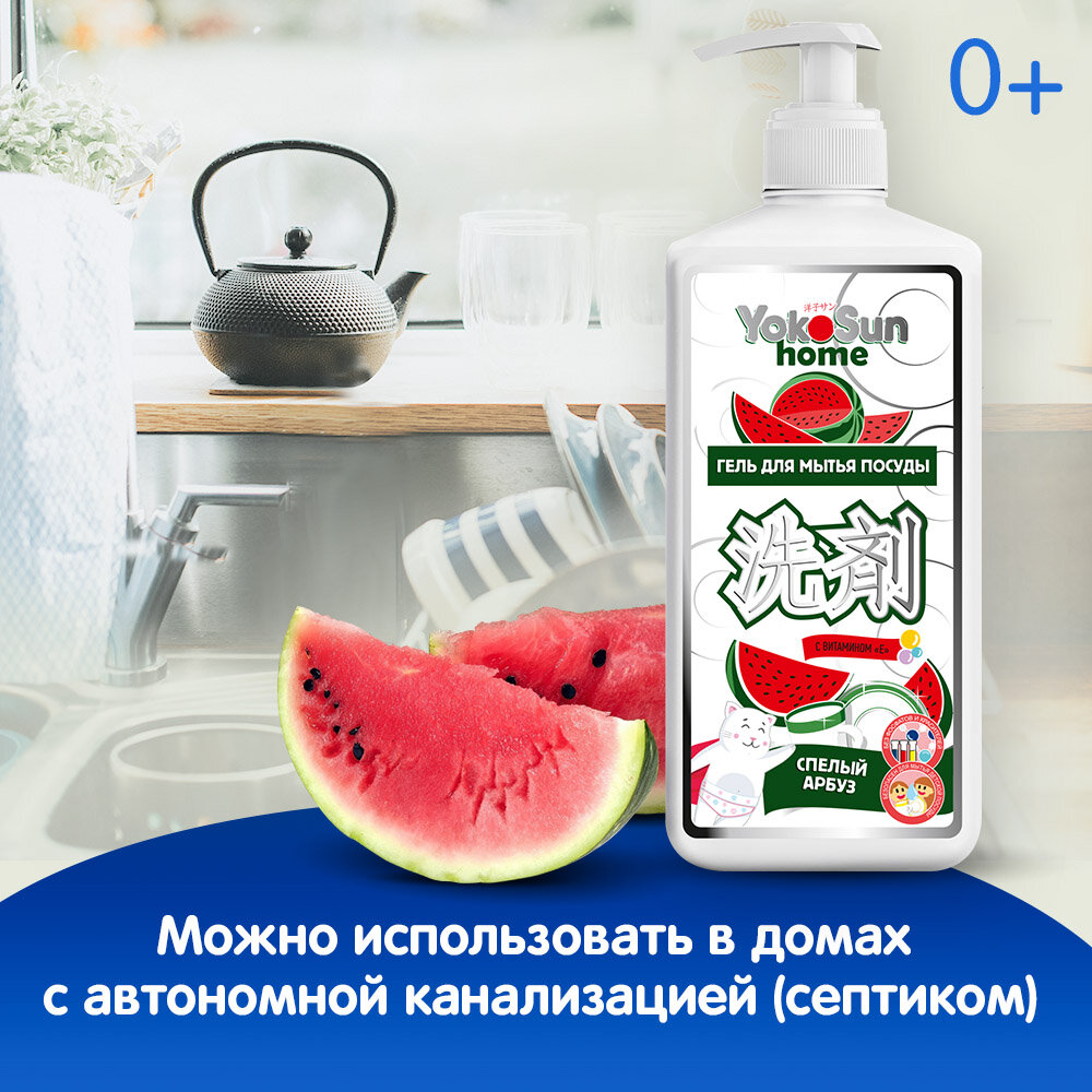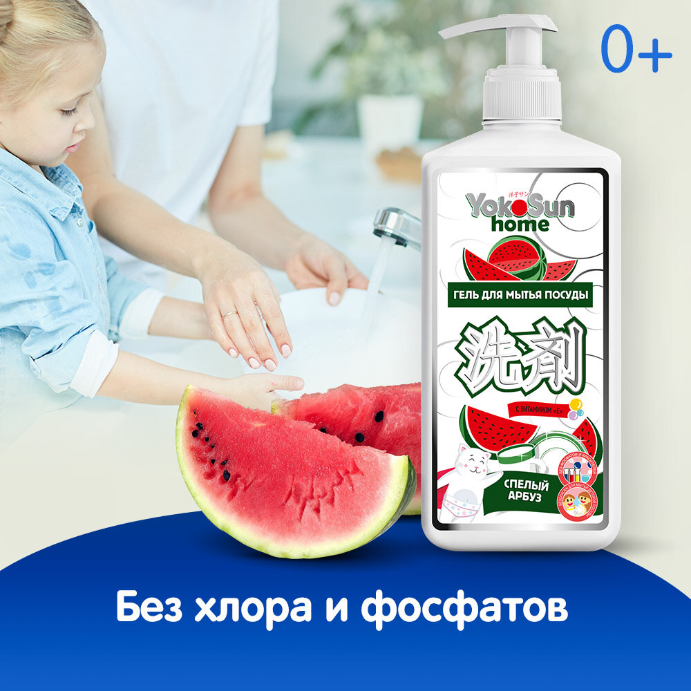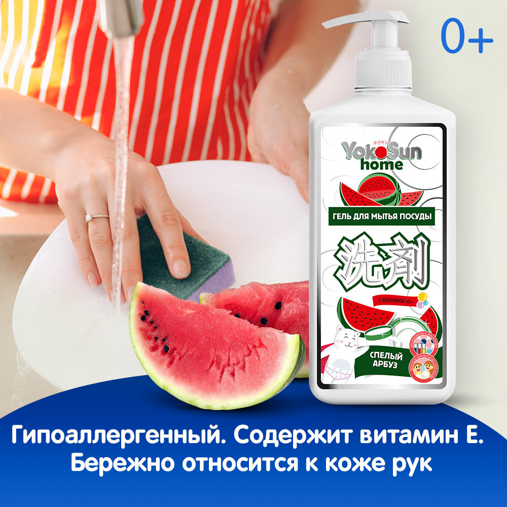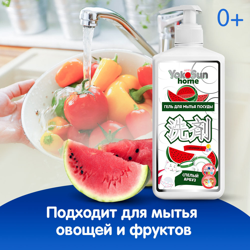 Гель для мытья посуды YokoSun "Спелый арбуз" 1л, гипоаллергенное средство для мытья фруктов, овощей и детской посуды интересное: