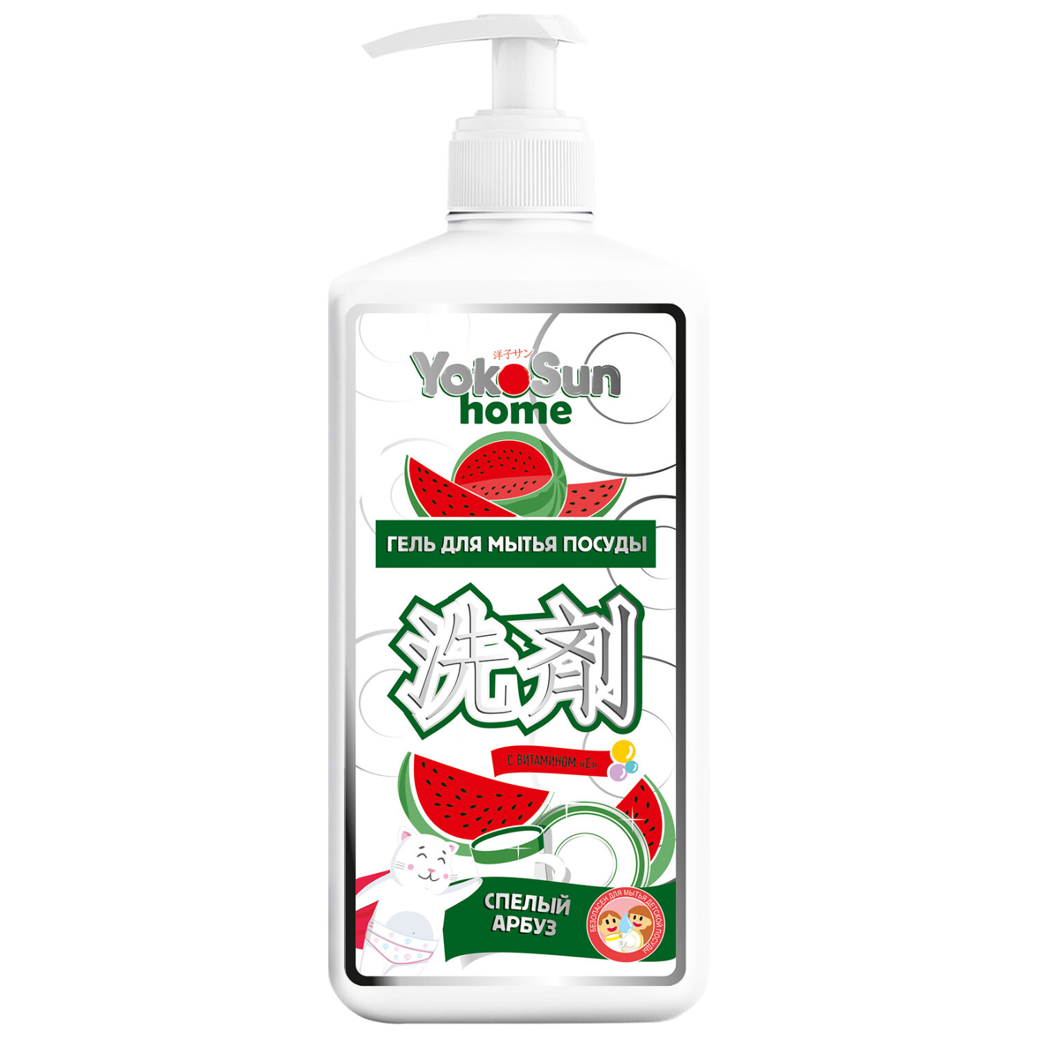 Купить Гель для мытья посуды YokoSun "Спелый арбуз" 1л, гипоаллергенное средство для мытья фруктов, овощей и детской посуды