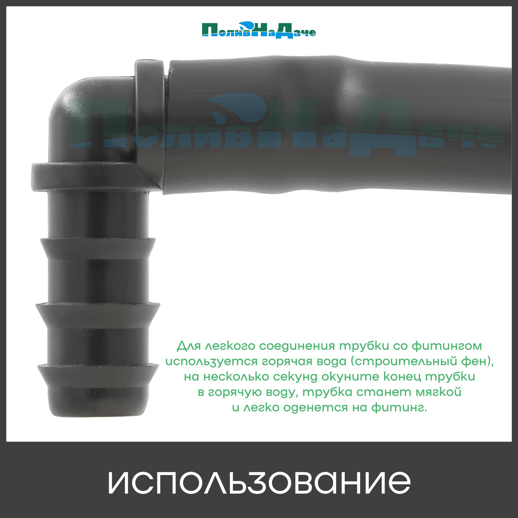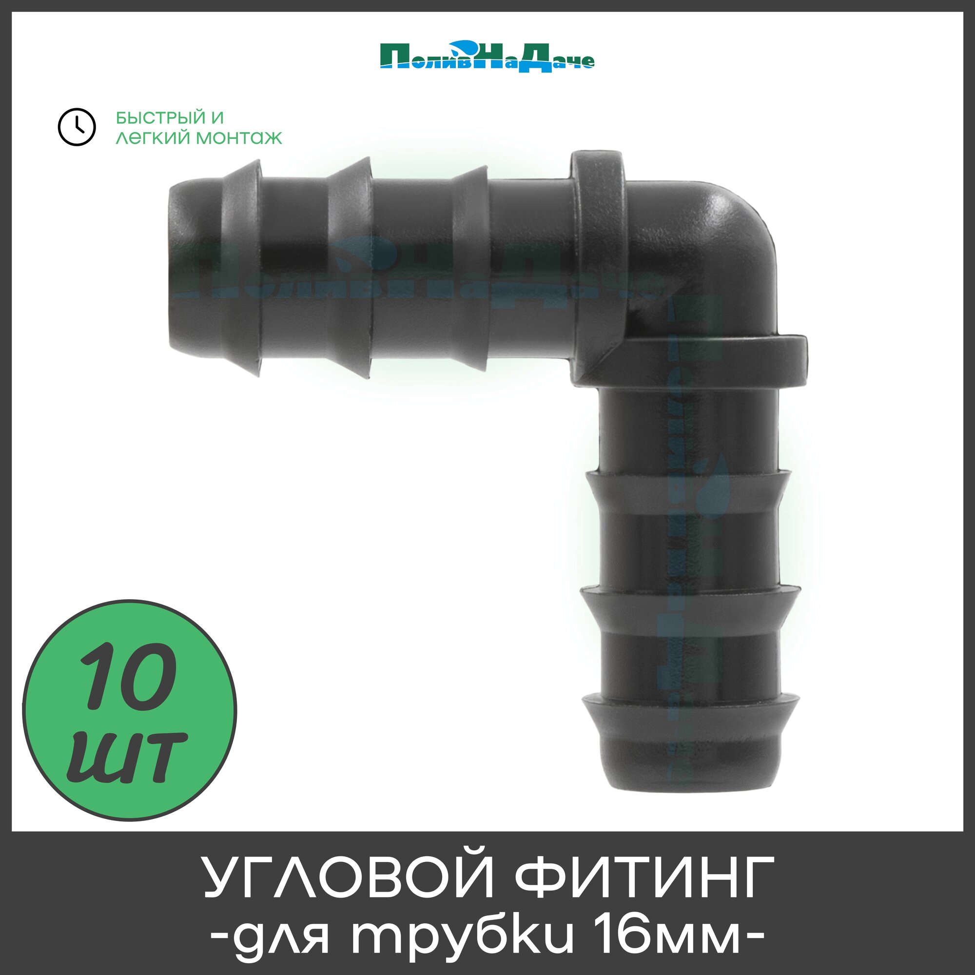 Коннектор-фитинг угловой для капельной трубки D 16 мм (10 шт) / Соединитель для поворота слепой трубки / Штуцер угловой для шланга