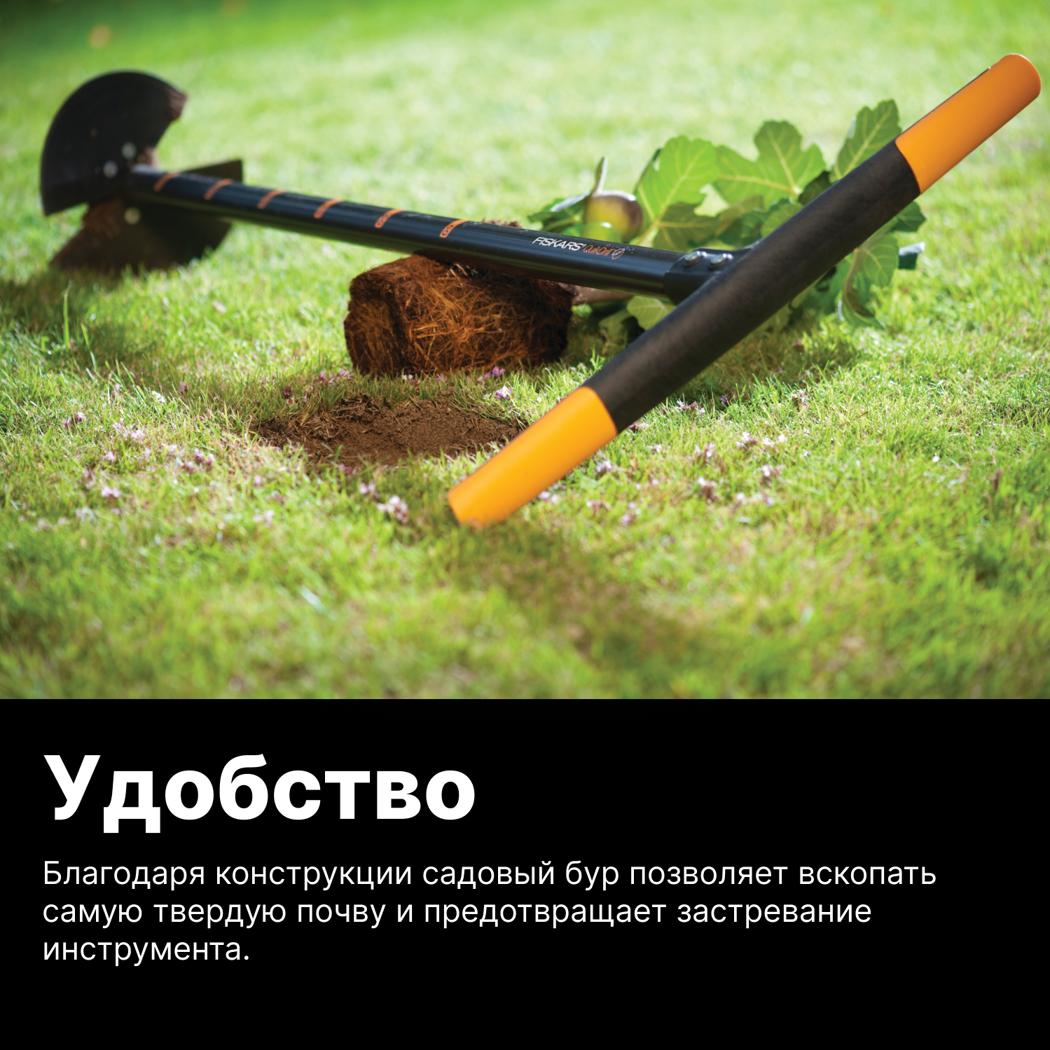 Бур садовый FISKARS малый 1,1 м, рабочий диметр 100 мм (1000636) интересное: