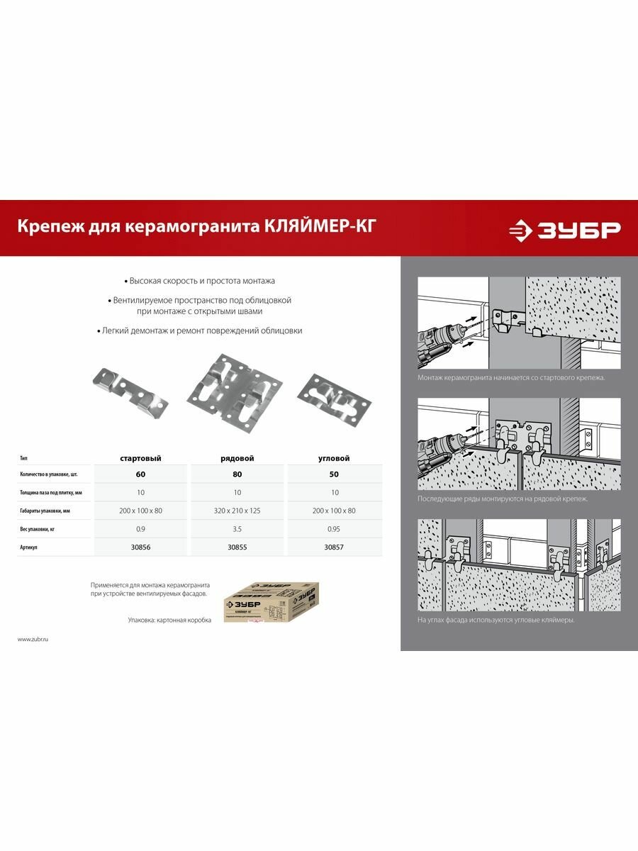 ЗУБР Кляймер-КГ 10 х 20 х 75 мм, стартовый крепеж для керамогранита, цинк, 60 шт (30856) интересное: