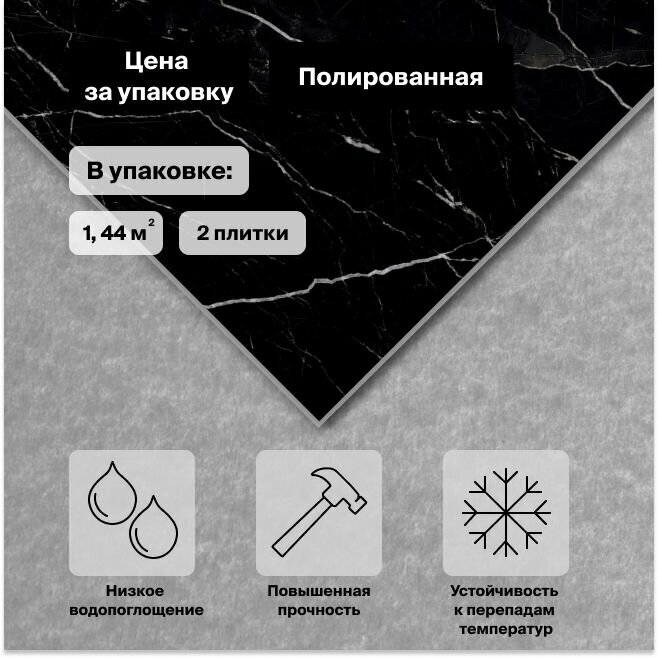 Купить Керамогранит Laparet Flash Black черный 60x120 Полированный, уп 1,44 м2 (2 плитки размером 60*120 см)