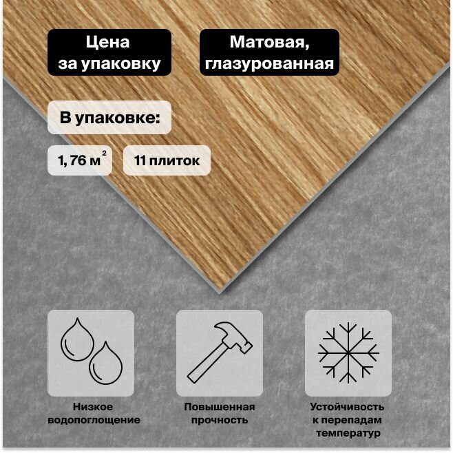 | Дополнительная информация | тон (оттенок) плитки может отличаться от партии к партии; каждая новая партия плитки имеет оттенок, отличающийся от оттенка предыдущей партии в силу особенностей производственного процесса плитки; отличие тона плитки разных партий не является производственным браком продукции |