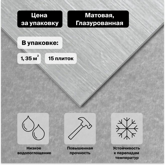 | Дополнительная информация | тон (оттенок) плитки может отличаться от партии к партии; каждая новая партия плитки имеет оттенок, отличающийся от оттенка предыдущей партии в силу особенностей производственного процесса плитки; отличие тона плитки разных партий не является производственным браком продукции |