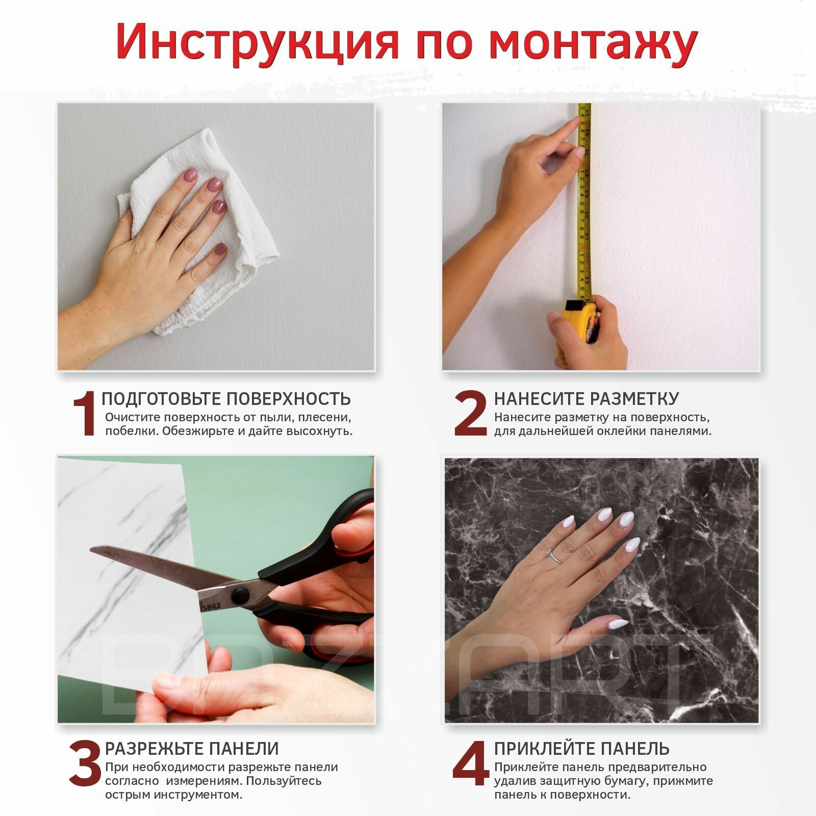 Плитка ПВХ самоклеющаяся глянцевая влагостойкая "Мрамор Каррара" 30х30 см 20 шт. стеновые самоклеящиеся панели моющиеся декор на стену вместо кафельной плитки для кухонного фартука