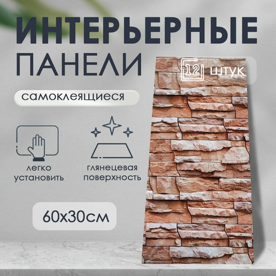 Купить Стеновая панель ПВХ самоклеящаяся Камень 12 шт