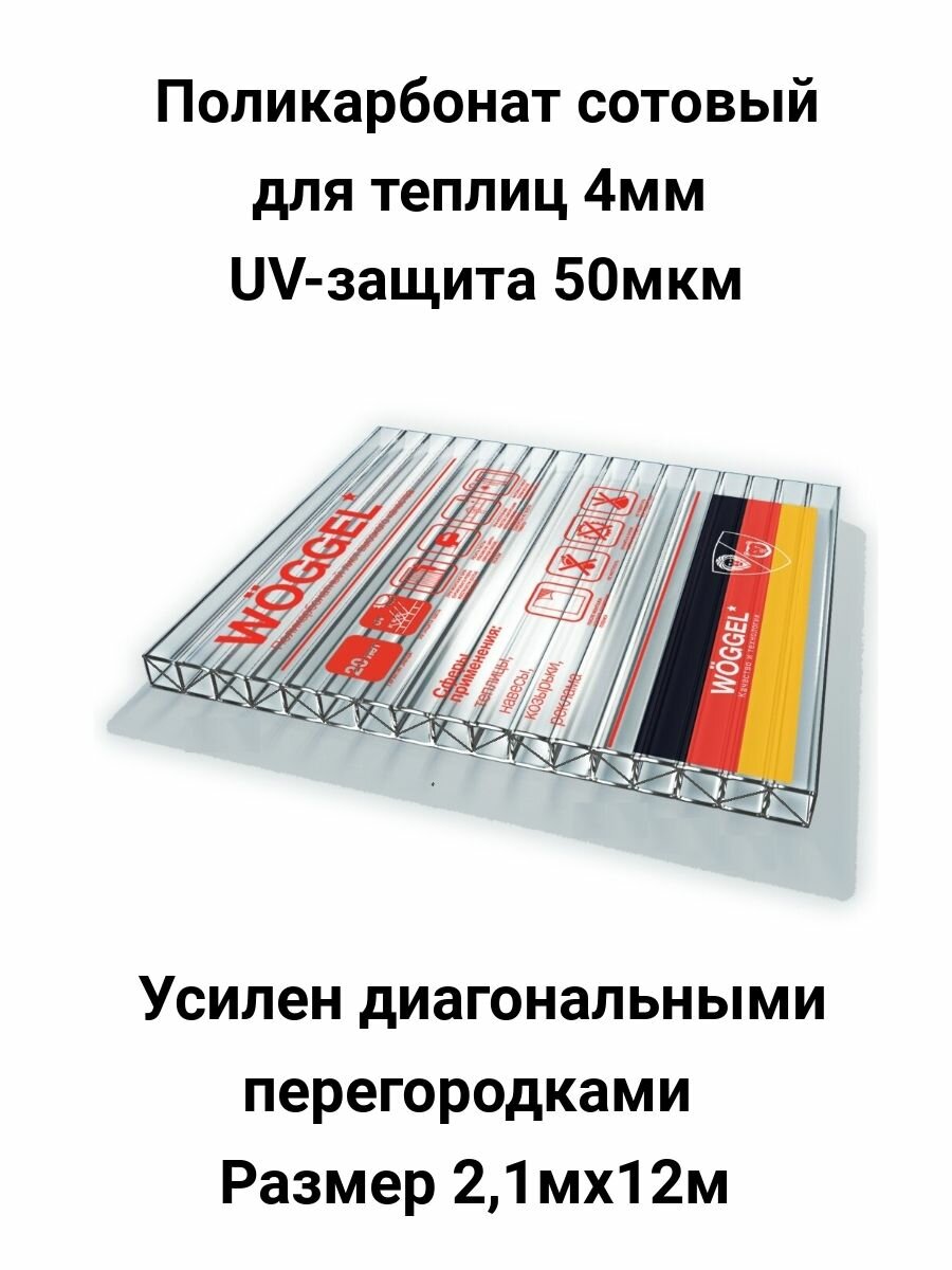 Купить 4 мм прозрачный сотовый поликарбонат Woggel гарантия 20 лет, длина 12 метров