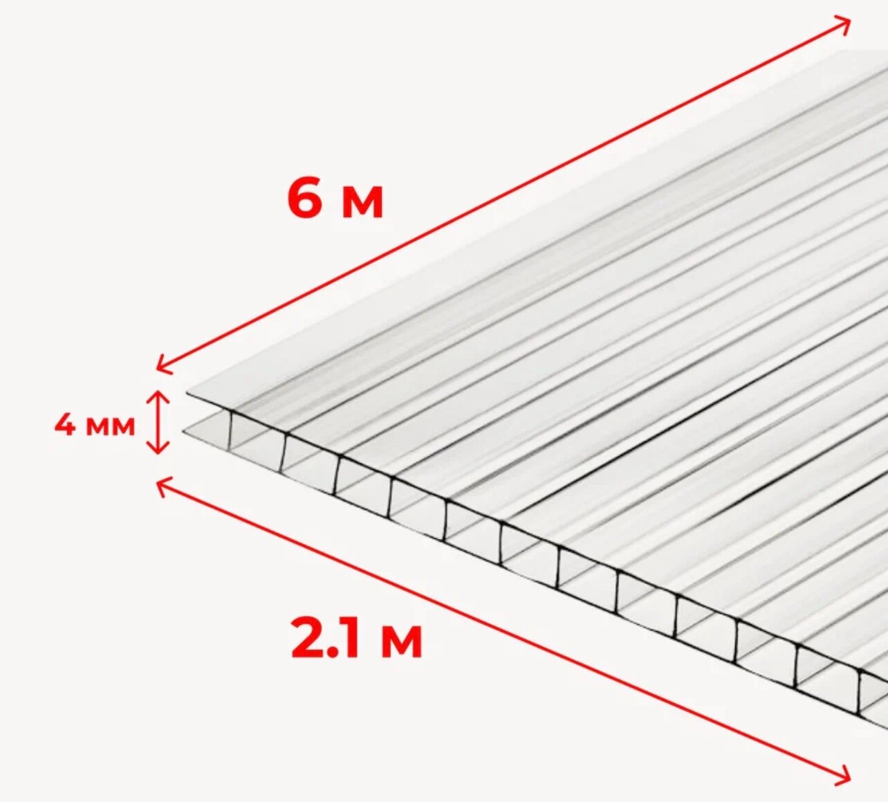 4 мм прозрачный сотовый поликарбонат Woggel - 2 листа по 6 метров
