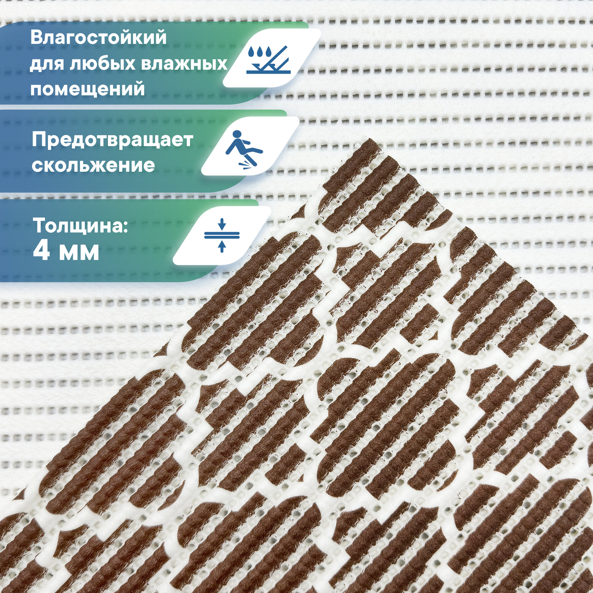 Коврик для ванны душа и туалета VILINA из вспененного ПВХ противоскользящий мягкий безворсовый 50х80 с рисунком OV8 коричневый
