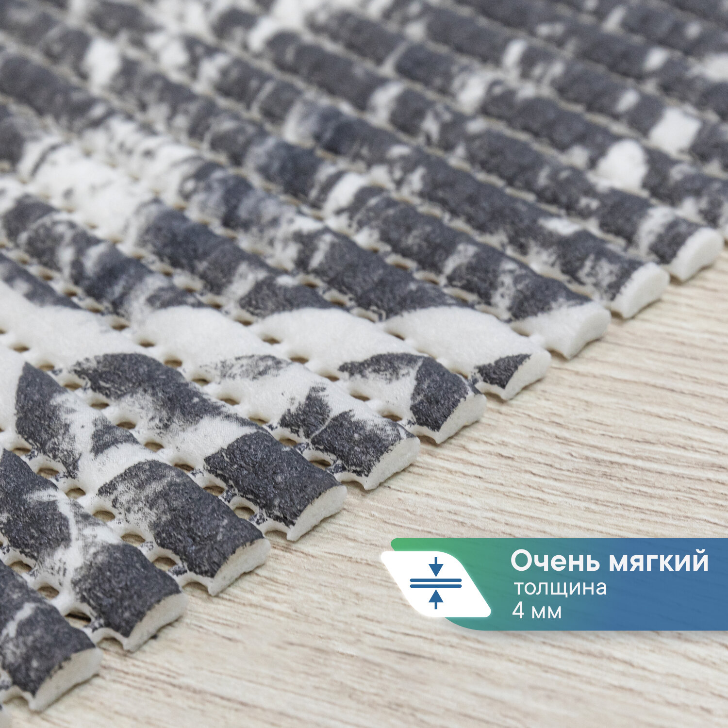 Коврик для ванны душа и туалета VILINA из вспененного ПВХ противоскользящий мягкий безворсовый 50х80см рисунком 116 серый