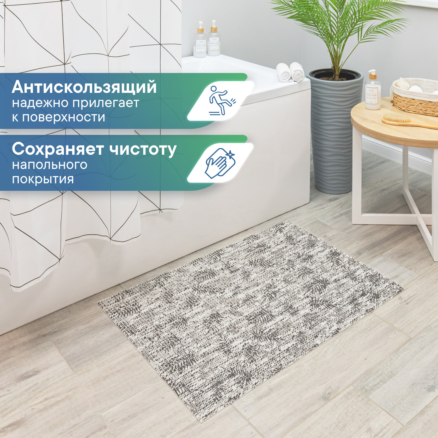 Коврик для ванны душа и туалета VILINA из вспененного ПВХ противоскользящий мягкий безворсовый 50х80см рисунком 7103GR