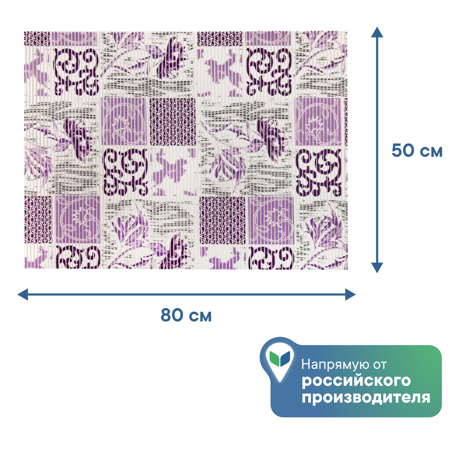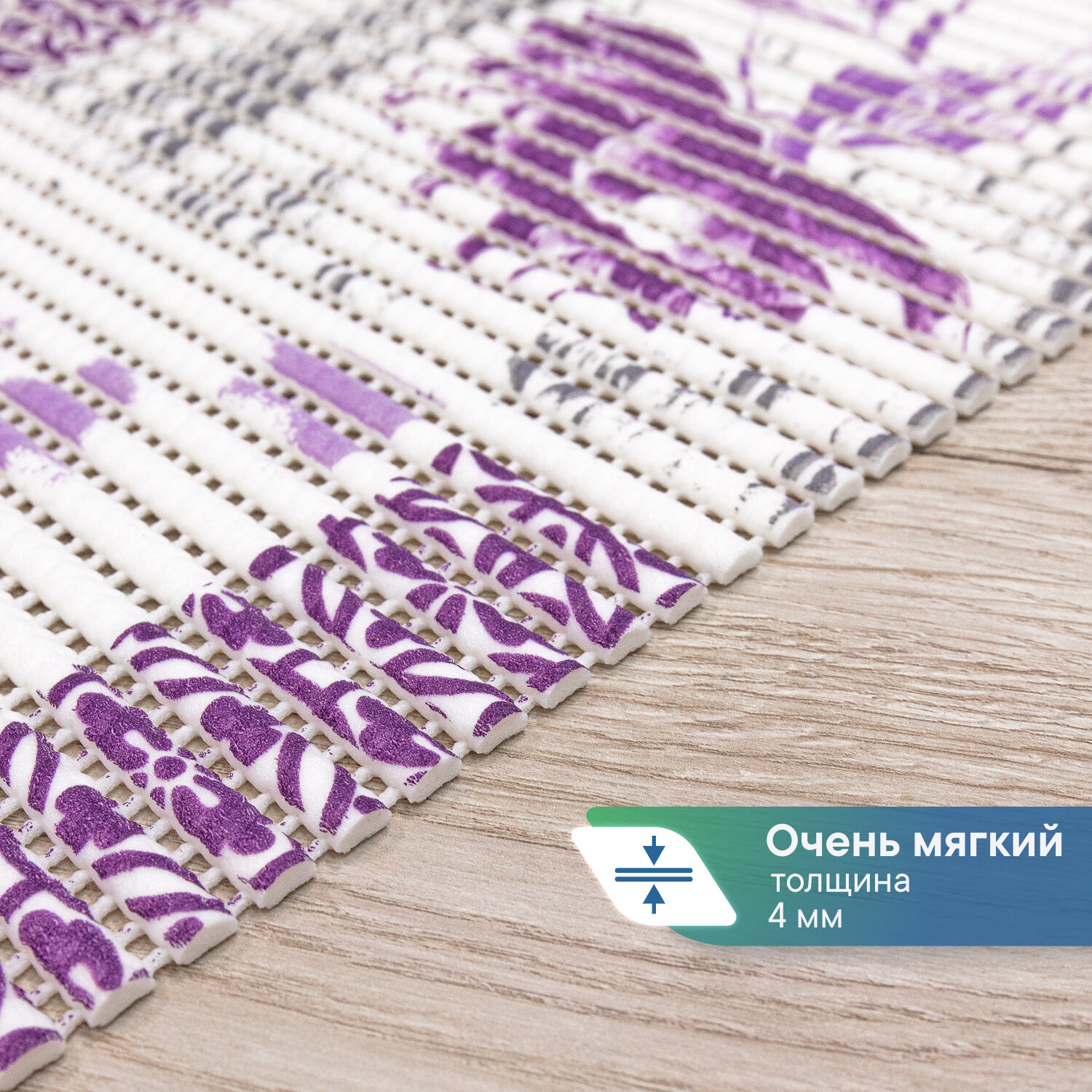 Коврик для ванны душа и туалета VILINA из вспененного ПВХ противоскользящий мягкий безворсовый 50х80 с рисунком OV10 лавандовый/фиолетовый