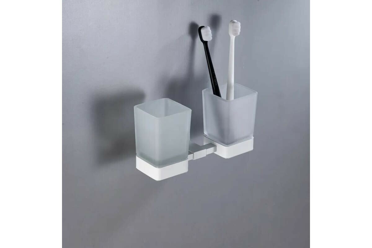 Двойной стакан для ванной Shevanik с держателем SG5622C белый