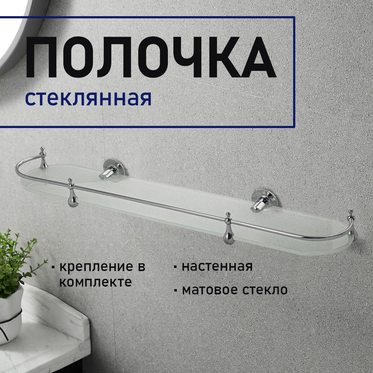 Полка для ванной под зеркало стеклянная