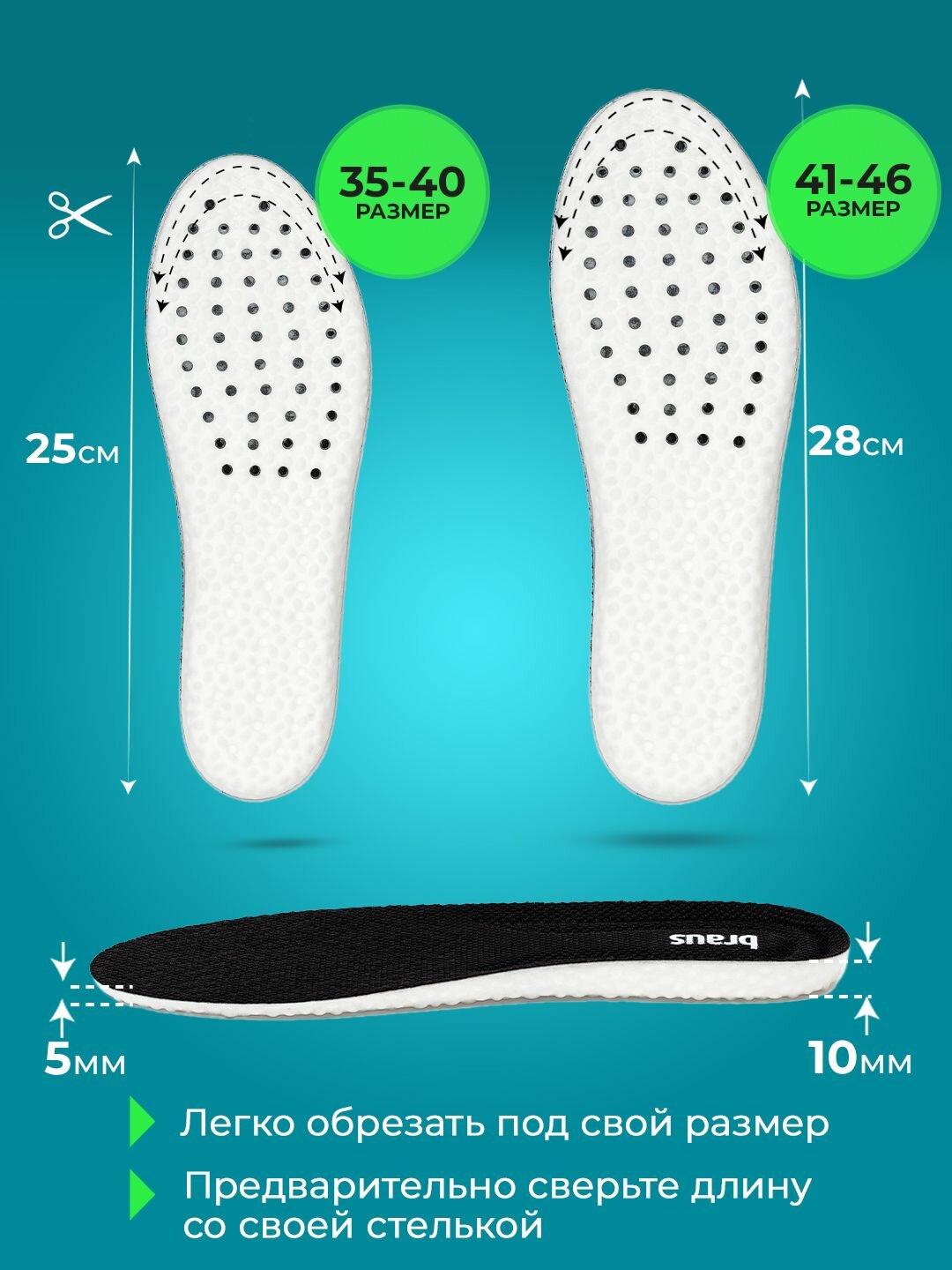 Купить Стельки для обуви кроссовок мужские женские спортивные анатомические 35-40 Braus