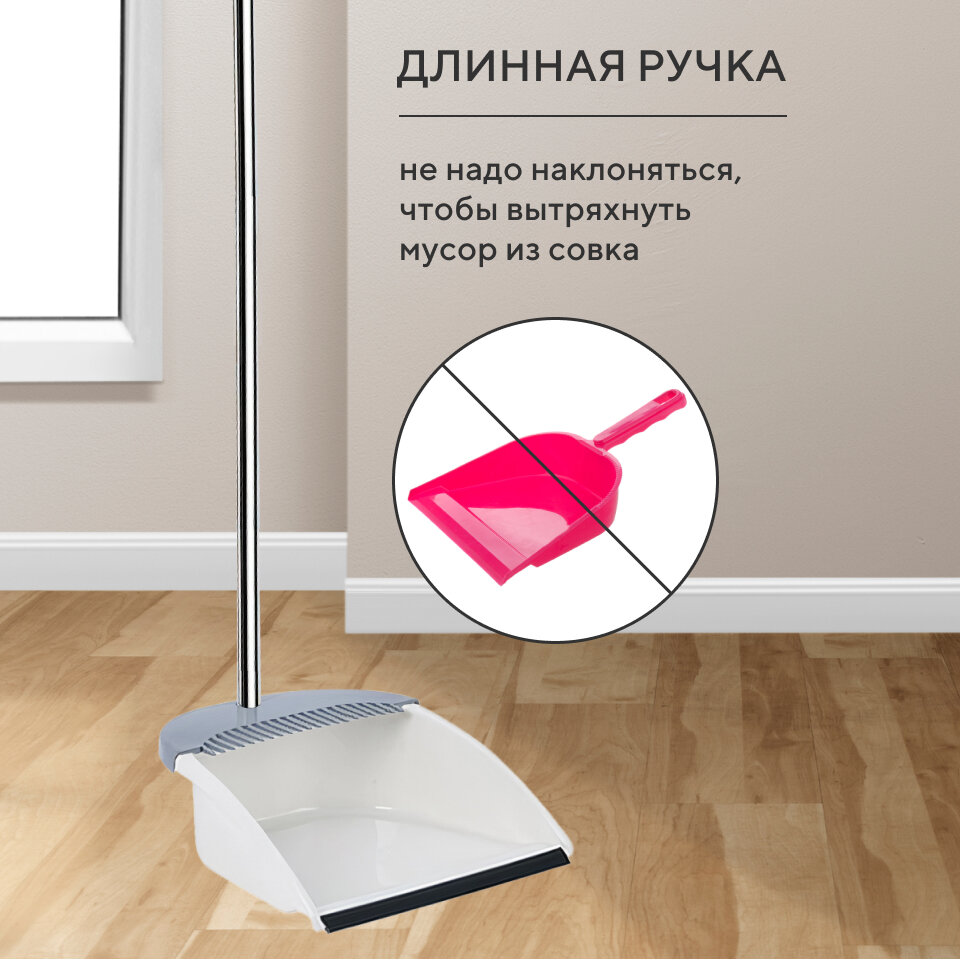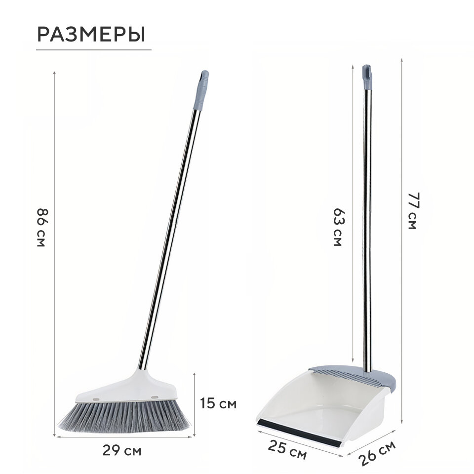 | Дополнительная информация | Густая и пластичная щетина метлы; Зубья на совке помогают легче избавиться от мусора; Прорезиненный край совка; |