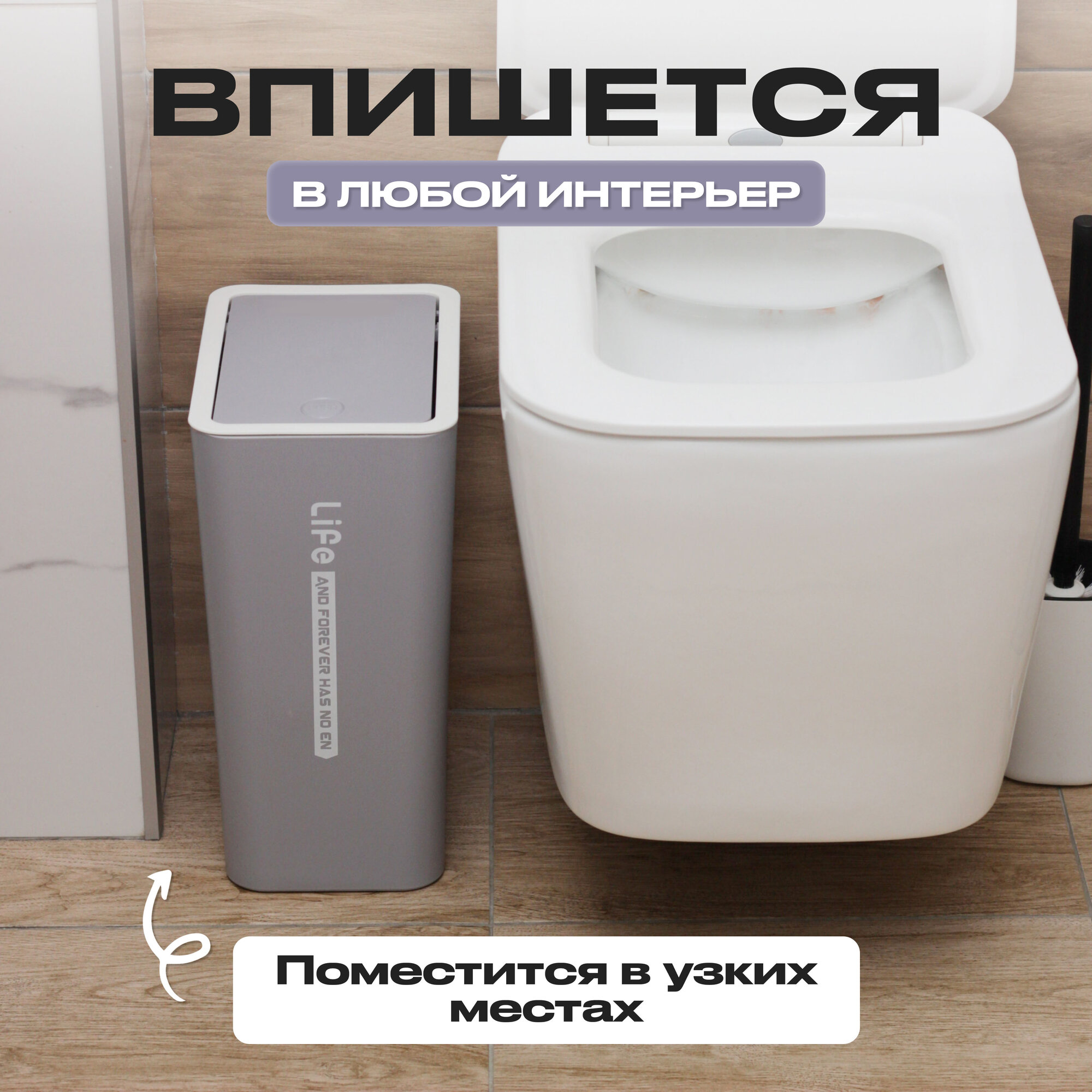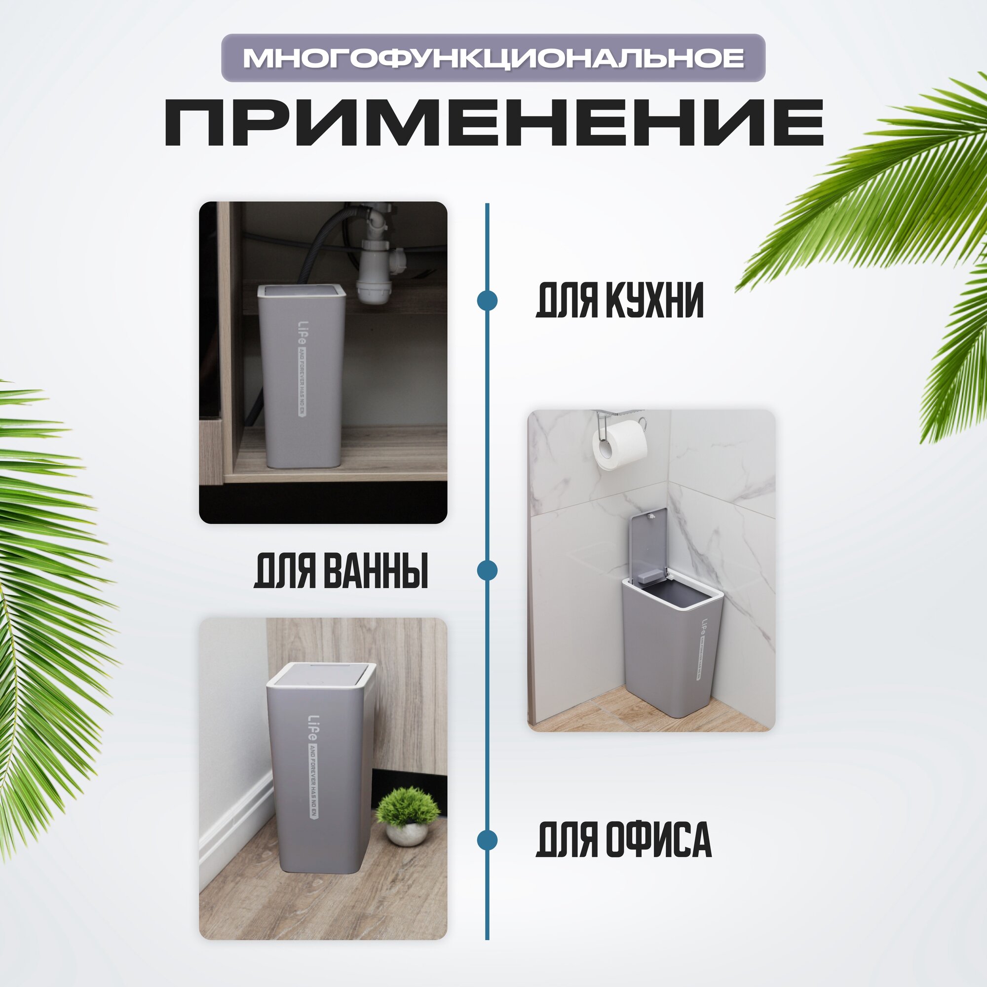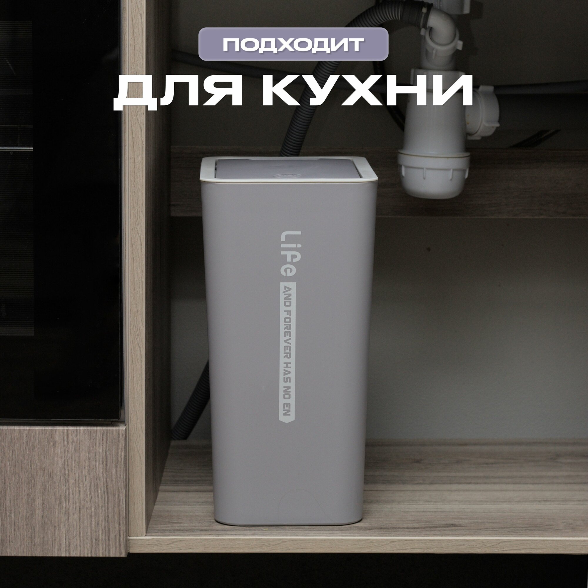 Мусорное ведро для кухни, туалета, офиса, с крышкой, 8 литров, серое