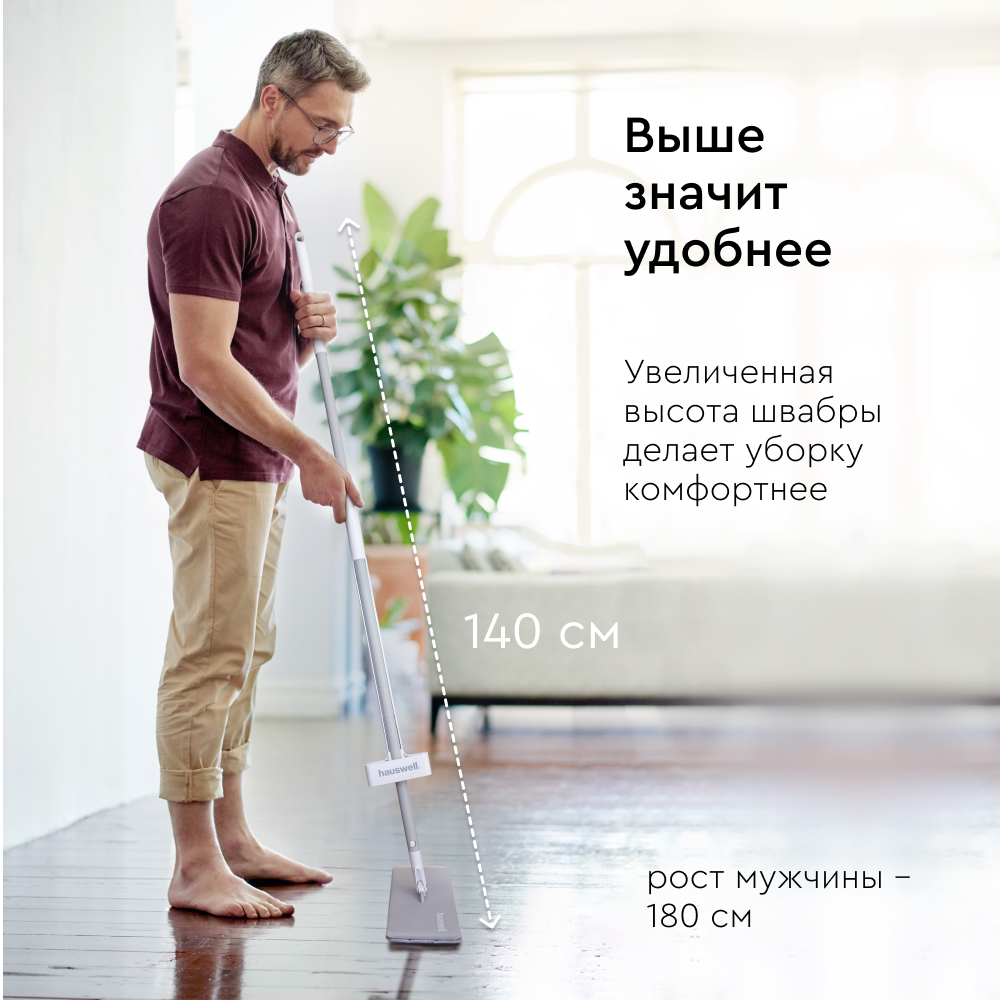 Швабра с отжимом без ведра Hauswell Slim Pro, 1 насадка, белая интересное:
